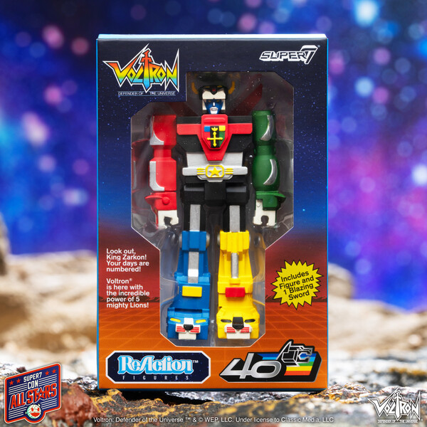 本次的百獸王 3.75 吋可動人偶還原五獅合體的經典造型,在 3.75 吋的比例下盡可能的重現了百獸王在劇中的模樣,塗裝以平面及珠光漆再現原版本的鮮豔配色,並附上了依比例打造的武器「十王劍」!本次的一大看點是在包裝盒部分的精緻印刷致敬了 1984 年玩具經典的外盒造型,並加上了 SUPER7、ReAction 以及 40 週年紀念的 Logo,讓各位可以在相對親民的價格及不佔空間的小比例下擁有百獸王 40 週年紀念商品!