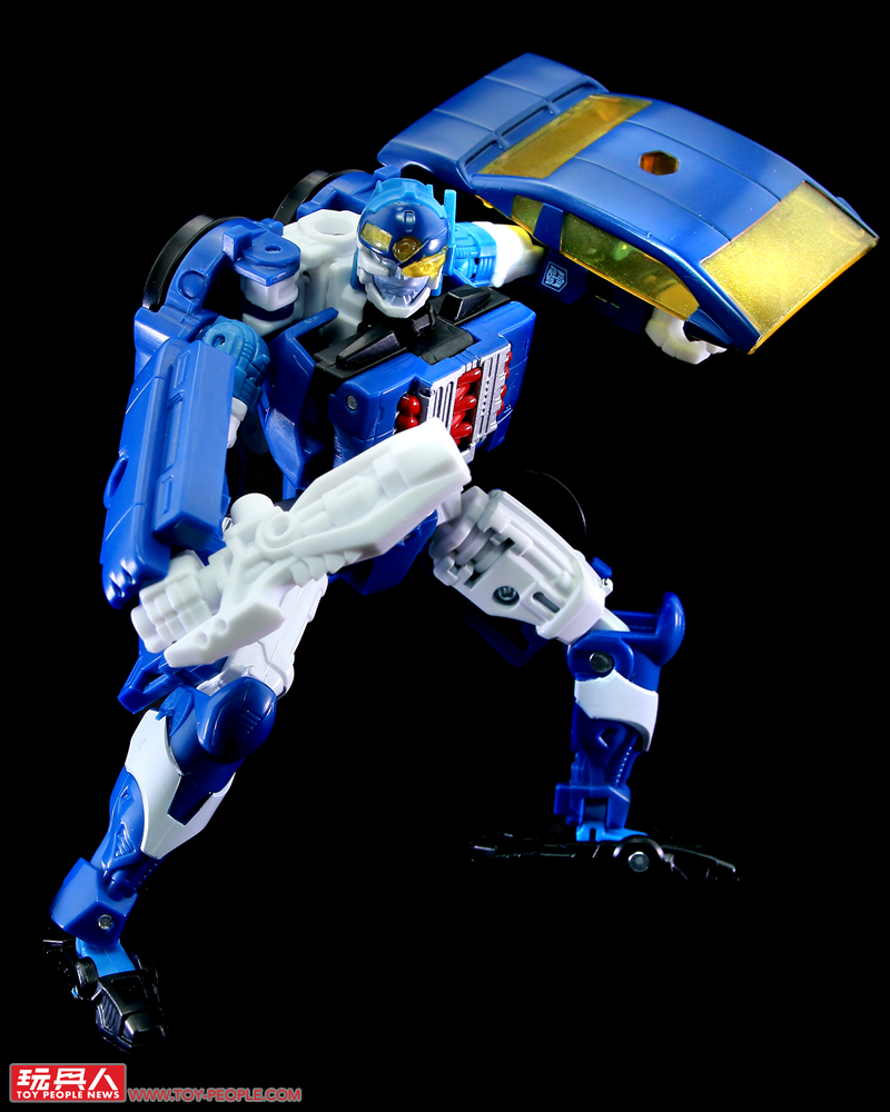▼「熱射(銀河之力宇宙)」(Cybertron Universe Hot Shot,見下註1),取材自2005年播映的動畫作品,來自博派(Autobot)戰線的年輕戰士,血氣方剛富有正義感,變形為藍色的跑車作為地球的偽裝模式。