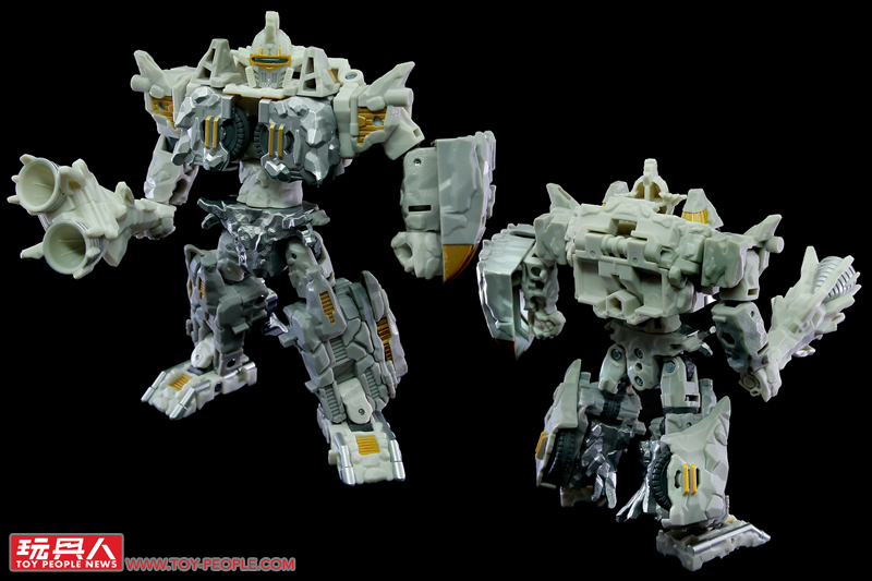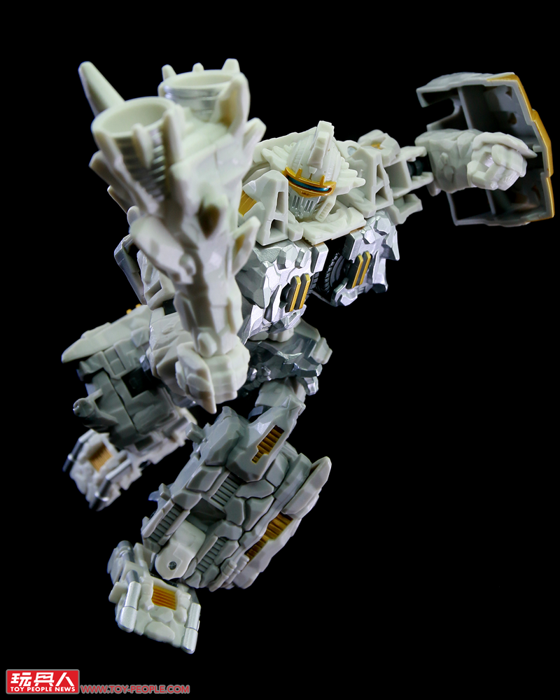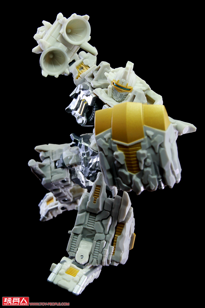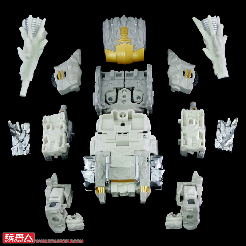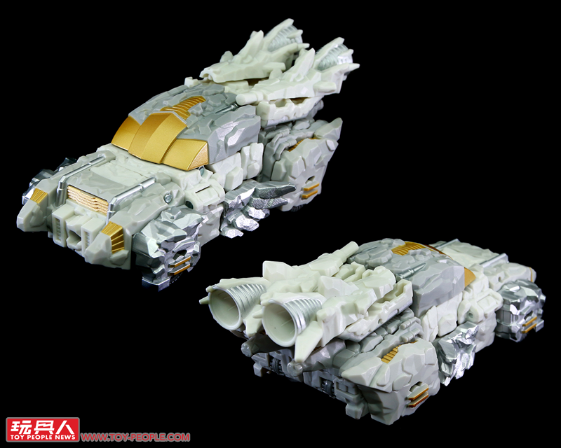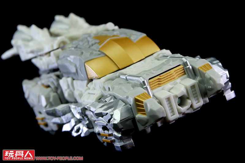 ▼載具模式,以岩石為外殼的異星車輛,在白灰金銀各色的相互搭配下,並不會有太過單一的死板印象。