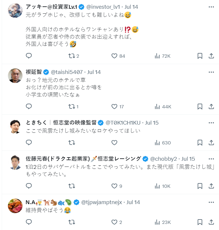最近探險家推主- Toshibo ( @JIYUKENKYU_jp ) 在 X 上發佈了一個位於愛媛縣當地相當有名的「天守閣」旅館-道後城,古色古香的豪華像是古代城池的模樣,卻在多年前法拍未成,如今淪落至廢墟,成為一個當地奇特景象。