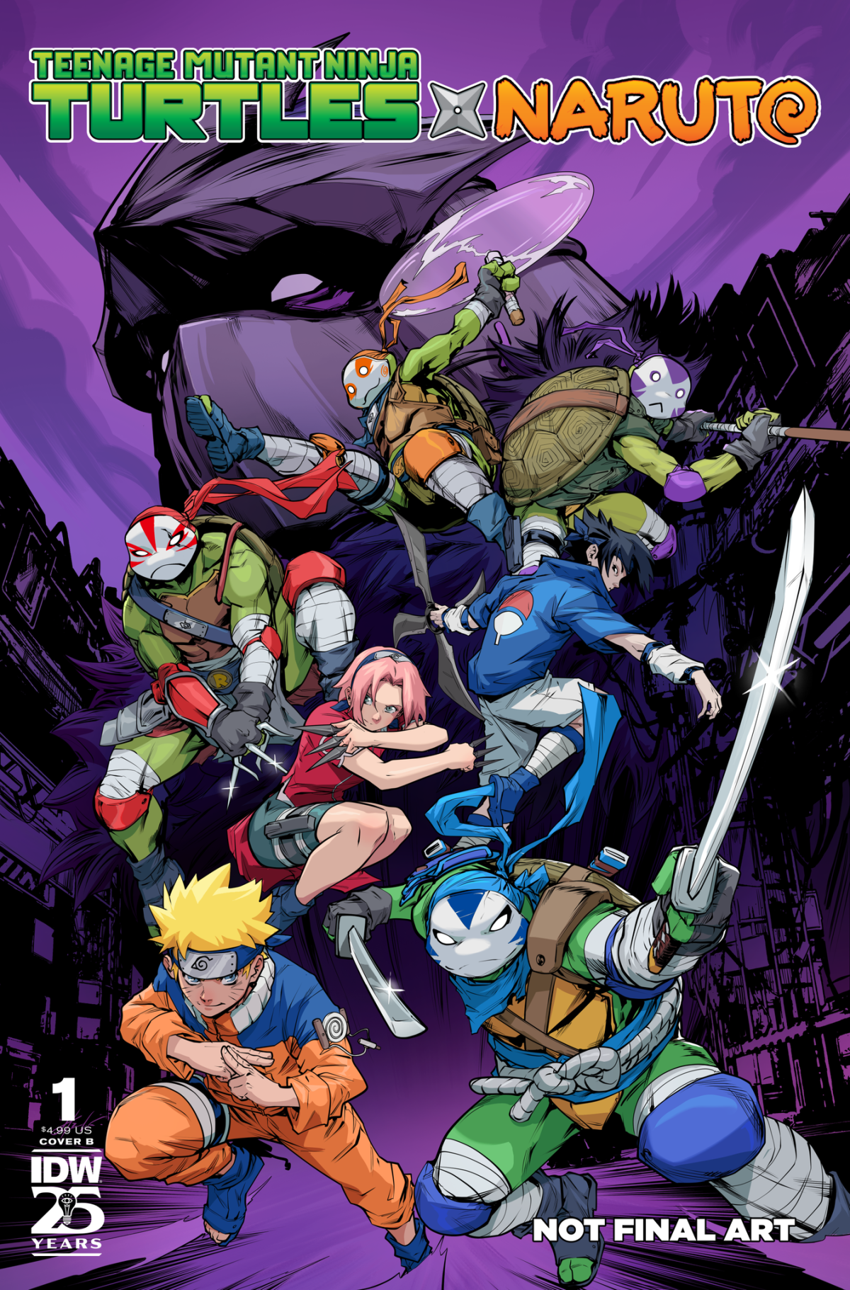 繼2021年在法國發行的美漫風格《我的英雄學院》(僕のヒーローアカデミア )後,今次日本另一部經典少年漫畫《火影忍者》(NARUTO -ナルト-),也將與美國英雄戰隊《忍者龜》(Teenage Mutant Ninja Turtles)進行首次的跨界合作,並在IDW展開連載,同時也釋出封面繪製與角色設計圖。