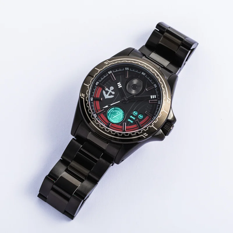 這次推出的聯名錶款以戰艦大和號為靈感設計,遨遊於無垠太空的形象打造。錶盤 12 點鐘位置,放置著大和號招牌的「波動砲」圖案;在 9 點鐘位置,則有一個新的船錨標記,也被稱為「ヤマトマーク」,是從《永遠的大和號 REBEL3199》作品中設計的。