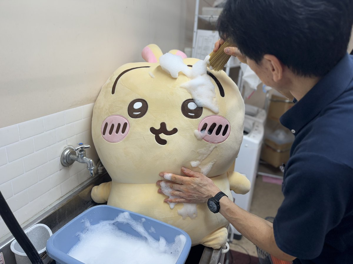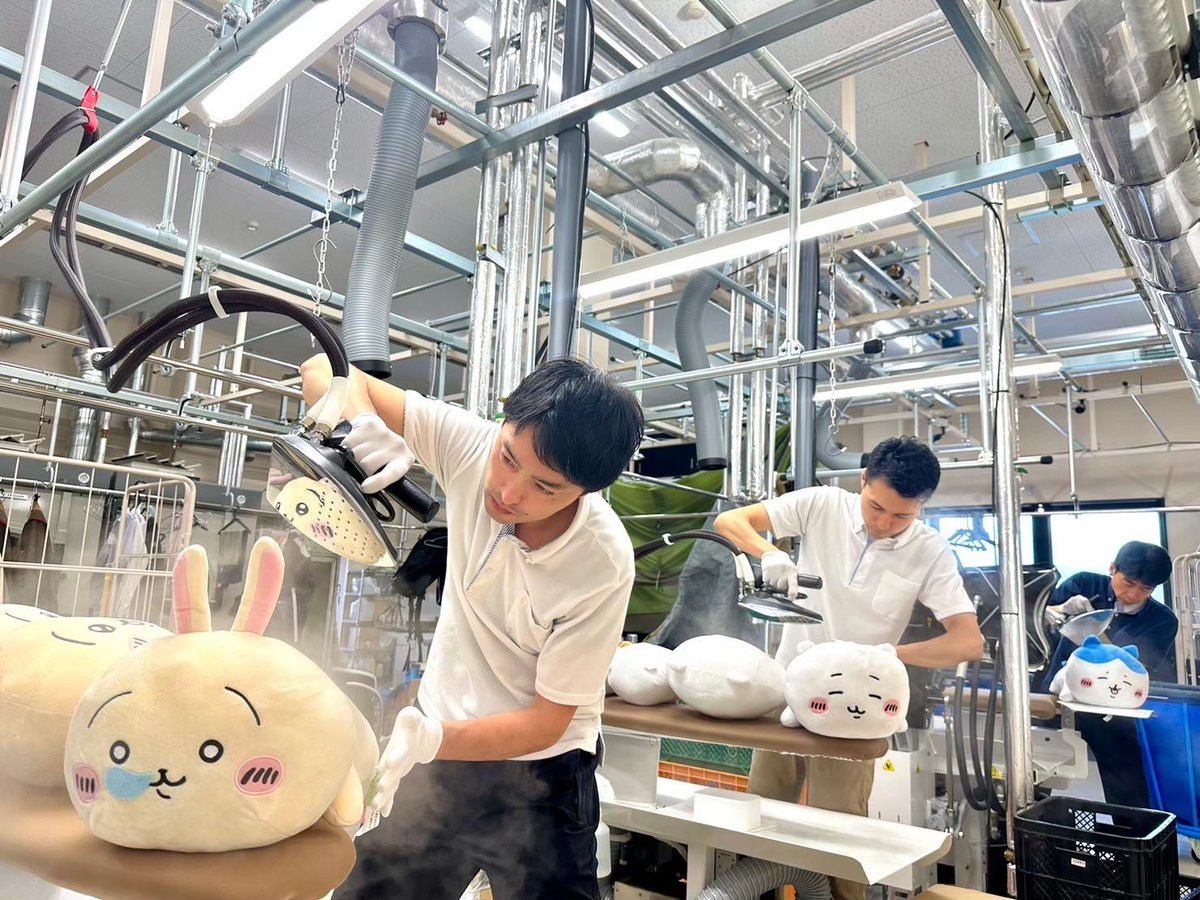 可以看到品牌的工作人員使用專業的清潔工具,替客戶的娃娃仔細的清潔,店家也表示非常歡迎這些自家無法好好清潔的周邊商品,交給他們會努力的讓客戶完成任務,拿回家有著乾淨的娃娃可以使用。