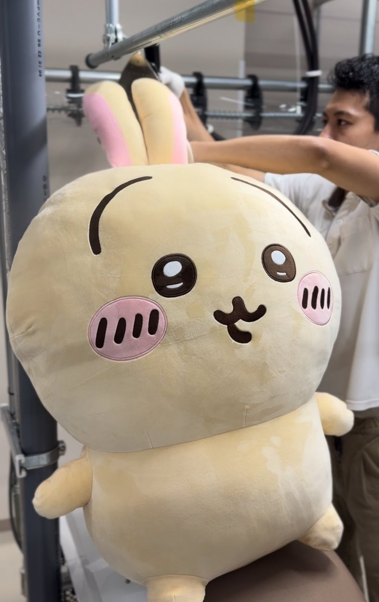 看著職人如此用心清潔烏薩奇兔子的娃娃,有種莫名的療癒感,感覺兔子又要喊出讓人發笑的聲音了 XD。