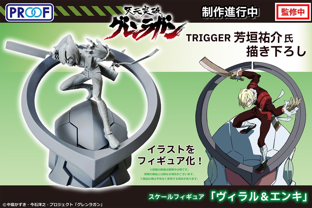 此次 PROOF 共展出四款將《天元突破紅蓮螺巖》劇中主要角色立體化的比例模型商品,每款模型都是與當年負責《天元突破紅蓮螺巖》動畫製作、現獨立出來的 TRIGGER 動畫公司合作,分別使用社內動畫師吉成曜、今石洋之、安部葵、芳垣祐介專為此次商品繪製的新插畫製作。