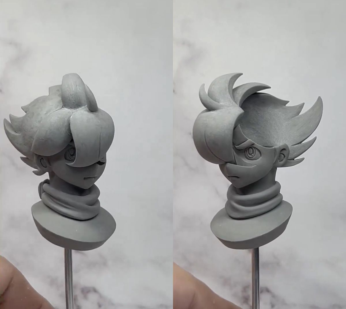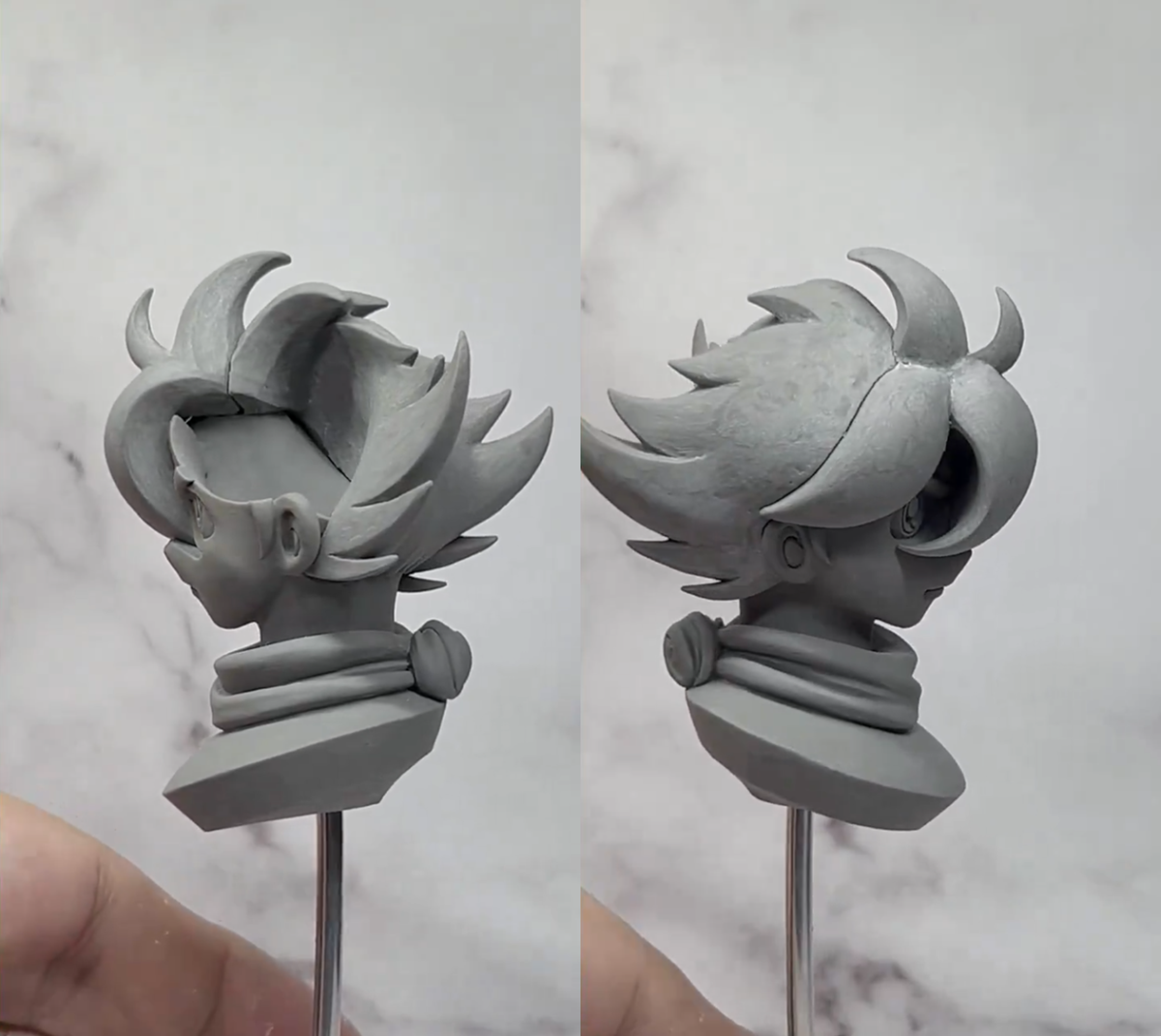 從未上色成形的樣貌,可以看到其實頭髮並非完全捏出,反倒是在一半有點簍空的狀態,這樣看或許各位很難想像出上色後的成果。