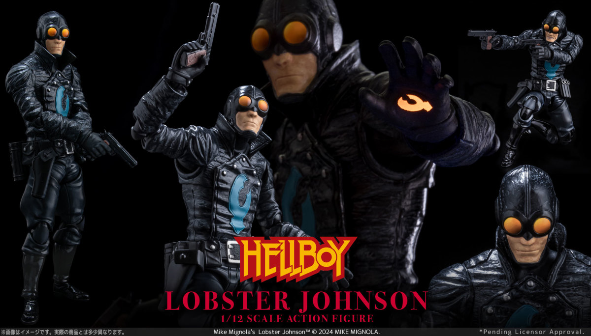 「龍蝦強森」1/12 比例可動人偶,尺寸全高約 16 公分,再現了原作者 Mike Mignola 引人入勝的插畫,同時還具有廣泛的動作範圍。胸前獨特的龍蝦標誌亮眼呈現,皮衣的紋理與皺褶也細膩刻劃;附有可替換的咬牙臉、兩把手槍和替換手部零件等配件,左手熱能手套上的龍蝦螯形狀的烙鐵透過造型和色彩來表現!在UV-A燈的照射下會發光,營造出炙燙的感覺。