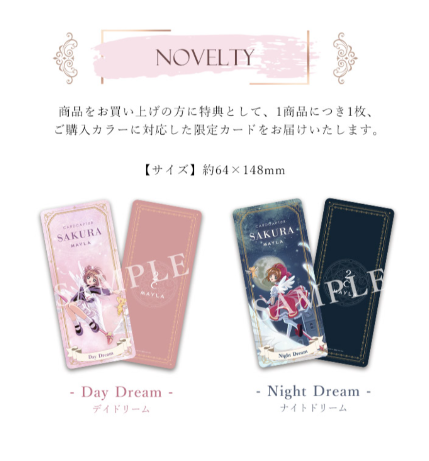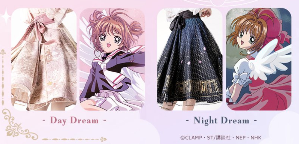 這次的裙款有兩款樣式,分別為「Day Dream」&「Night Dream」,剛好一白一黑的樣式推出,設計上細節也多有庫洛牌、可魯貝洛斯與櫻花花瓣等細節,搭配 MAYLA 招牌的華麗風格設計,打造出魔法少女氣息的絕妙穿搭選擇。