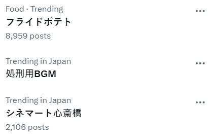 ▼ 「処刑用BGM」也成為今日日本 X 趨勢關鍵字