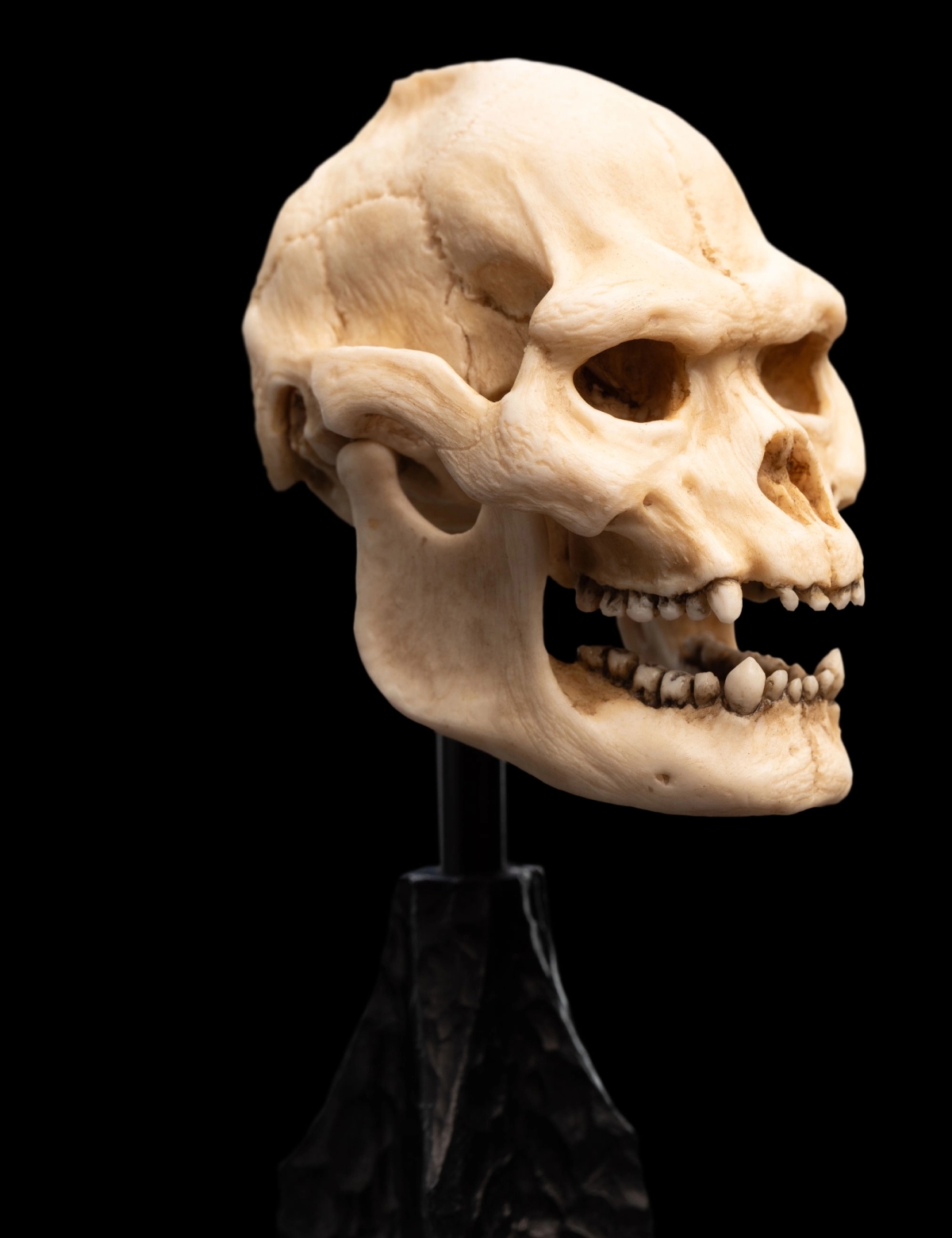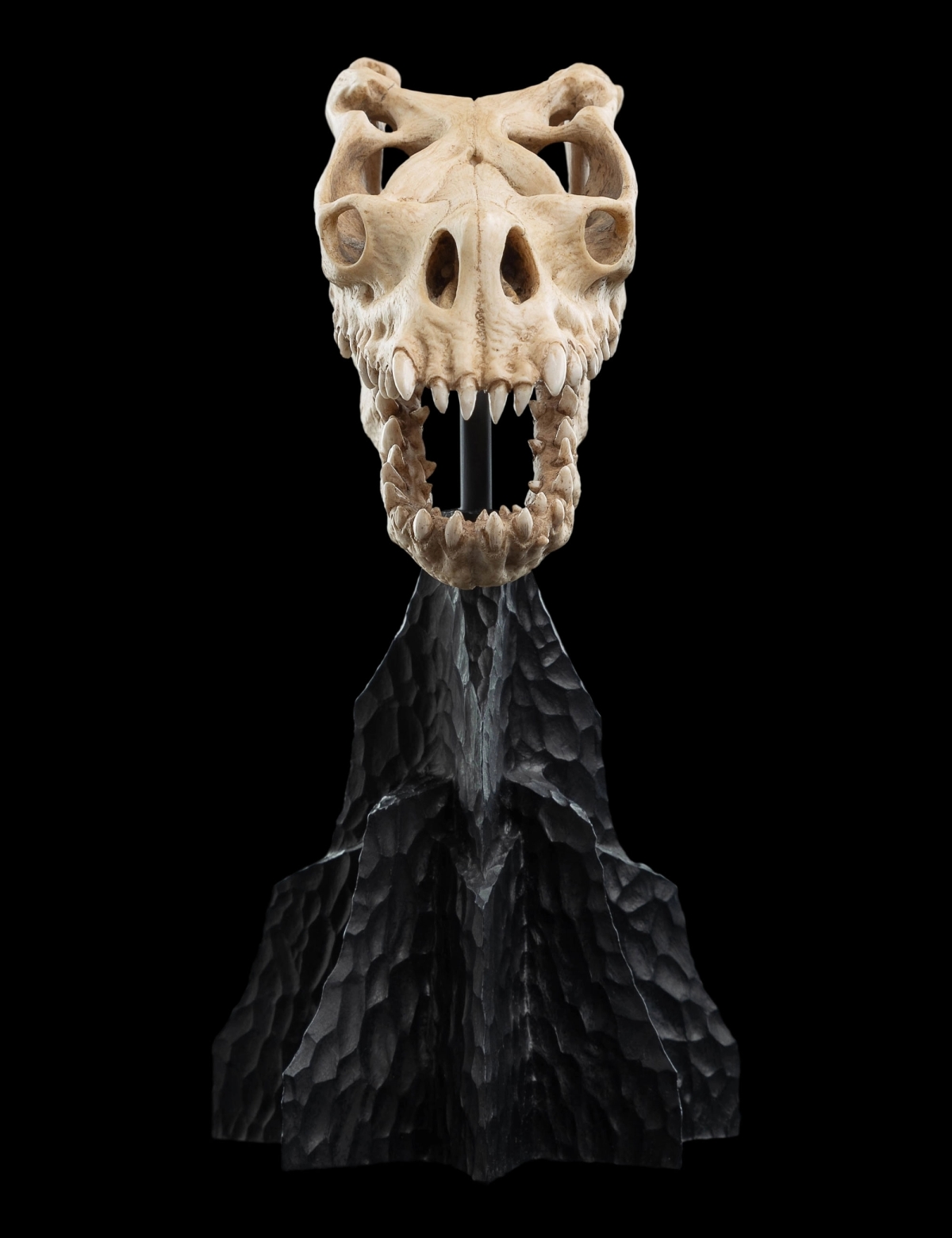 這次我們不僅是以一個魔戒迷、一個玩具人來看待這些新的收藏品,更多了彷彿考古學家、古文物愛好者一般的視角,從不同角度欣賞這些經典生物們的內在(物理)魅力!而負責操刀這次頭骨收藏造型的 Jamie Beswarick 同時也參與了《魔戒》系列電影的角色設計,大大提升了這次頭骨收藏伴隨的意義與說服力,似乎它們真的是來自中土世界的珍寶;材質部分採用 Polystone 為骨頭的主要原料,呈現出黑曜石(Obsidian)視覺效果的支架則讓人感受到如同薩魯曼所有之研究文物的氛圍,更有種博物館展示品的味道~真的很酷!