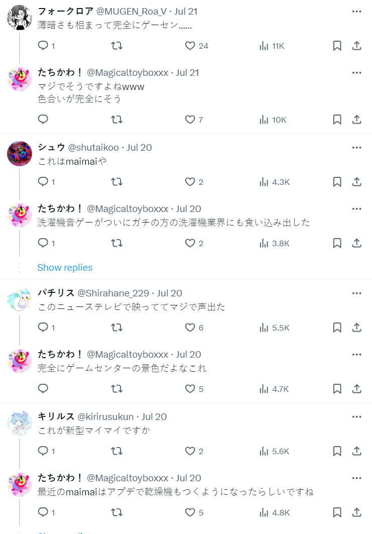 就有日本推主貼出新聞畫面,相信各位如果沒看到洗衣機的說明文字,要說這是 maimai 的新機台好像也很合理對吧 www。