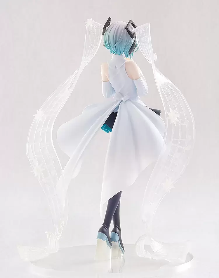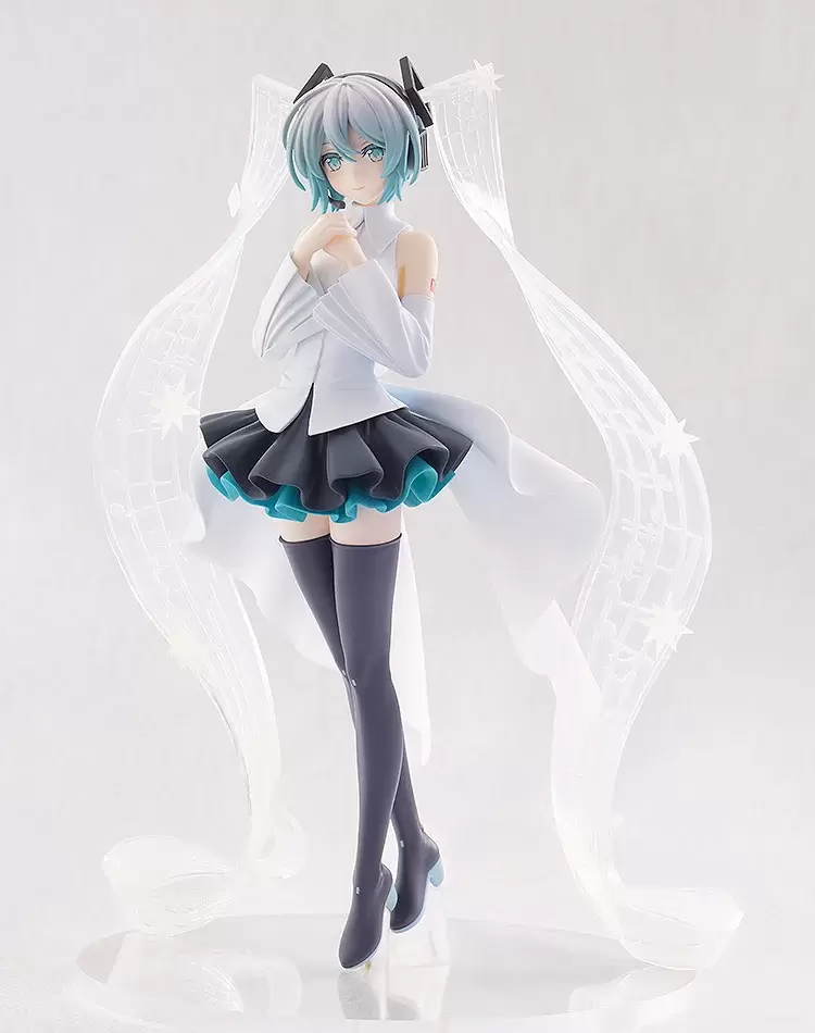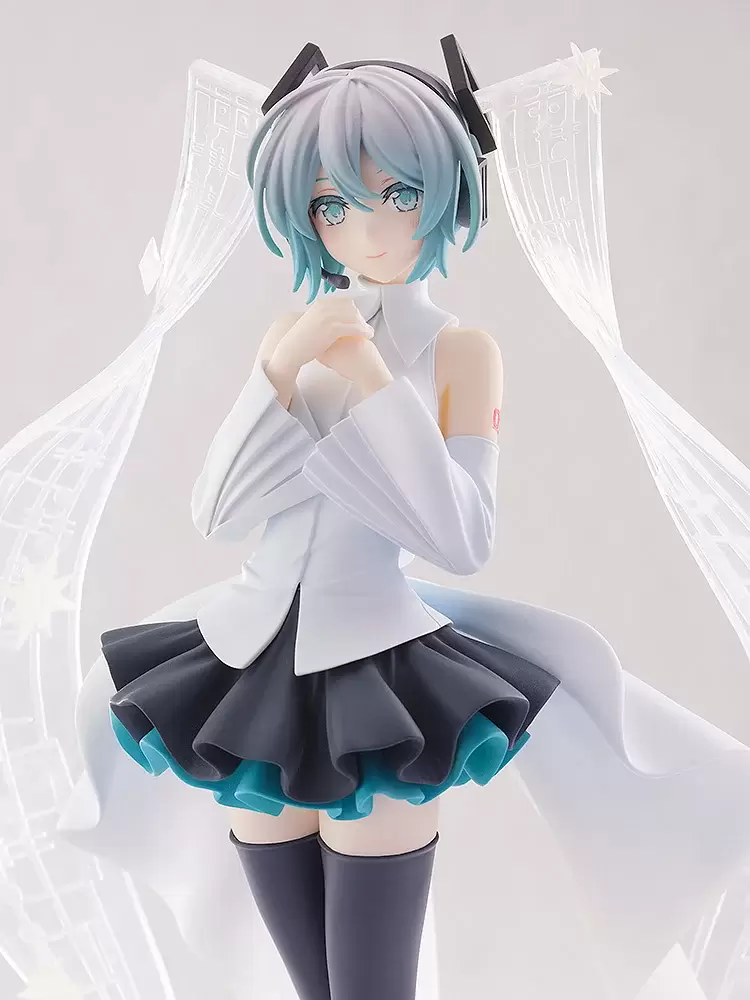 為祝賀初音未來 16 周年所發表的歌曲《Little Missing Stars》,由 Sasanomaly 與繪師 Rella 創作,本次的「POP UP PARADE 初音未來 Little Missing Stars Ver.」PVC模型,尺寸全高約 18 公分,將 MV 中的初音立體化~再現了以五線譜為設計的特徵雙馬尾,以透明材質打造,輕盈地垂落至地面;整體色調也較為淡雅,呈現出夢幻且優雅的造型。