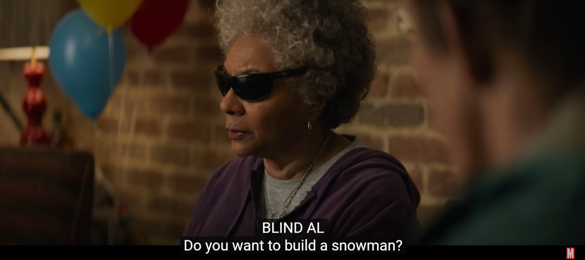 6. 你要堆雪人嗎? 盲婦愛兒問死侍「要不要來點古柯鹼?」卻被死侍提醒毒品是凱文費吉的禁忌。愛兒就提了許多代名詞,其中一句「你要堆雪人嗎(Do you want to build a snowman)」就是嘲諷新東家迪士尼的動畫《冰雪奇緣》的經典歌曲《Do You Want to Build a Snowman? 》。