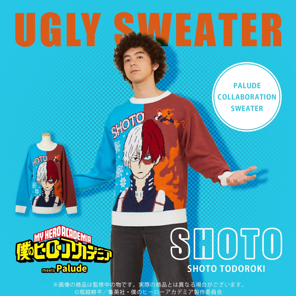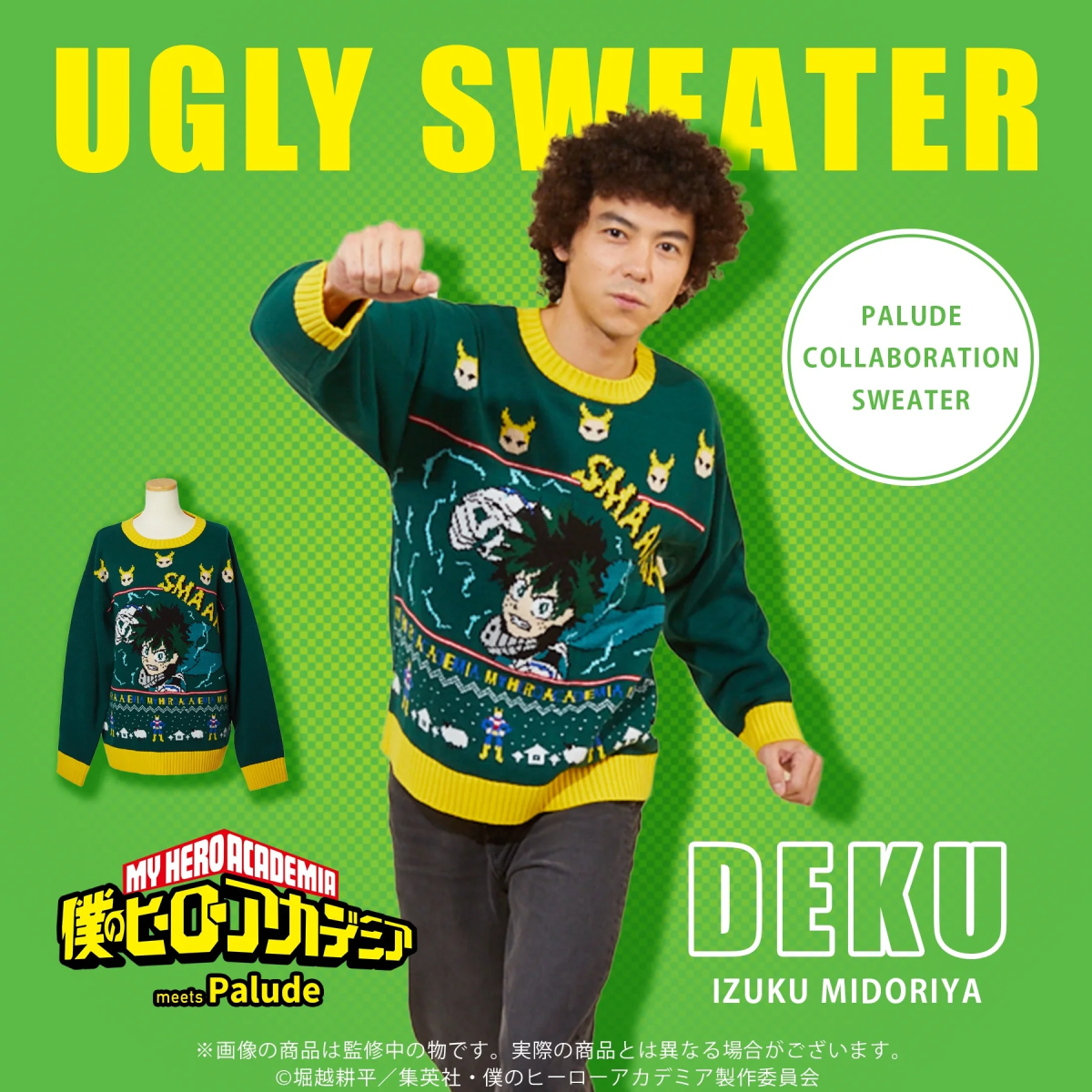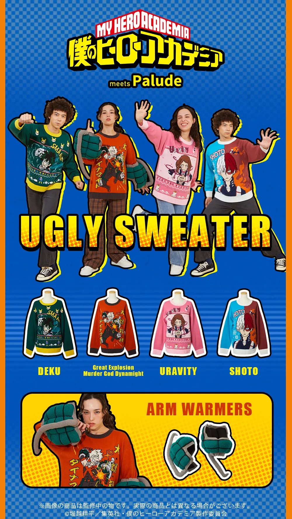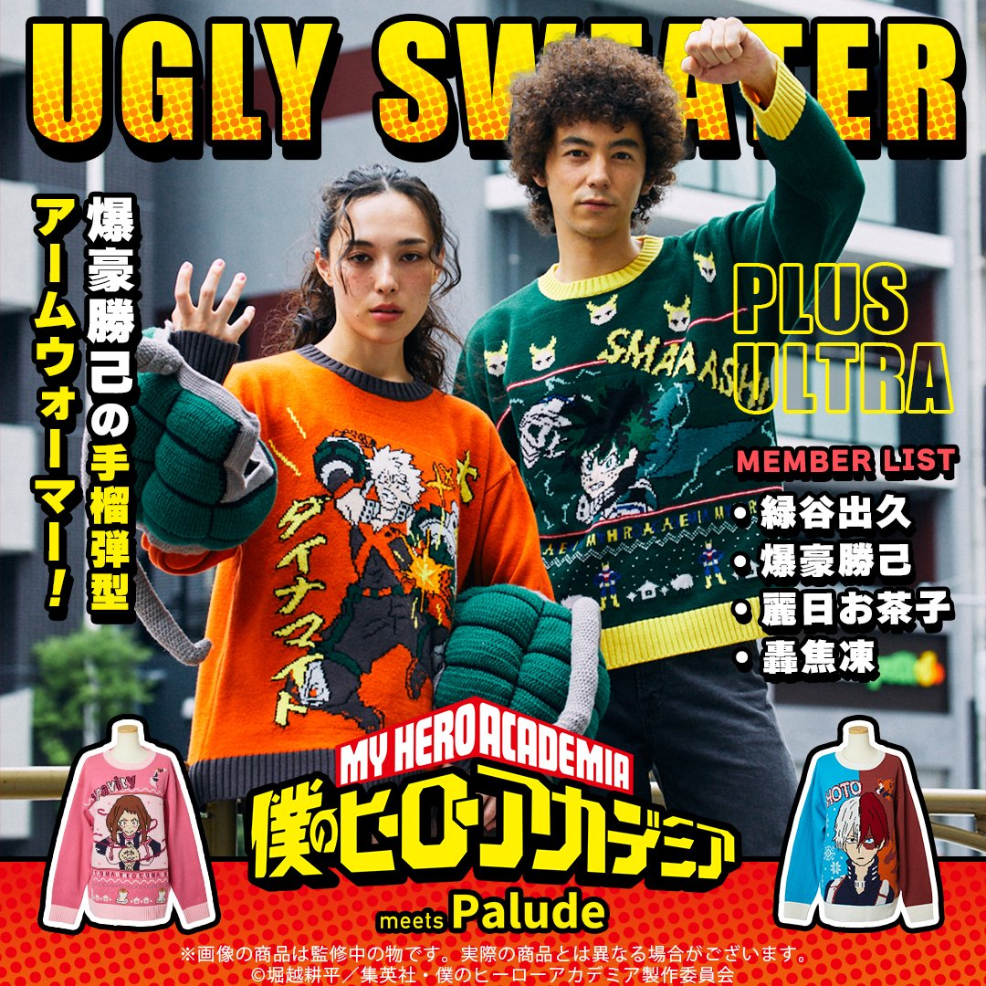 這次使用的圖案延續醜毛衣該有的滿版設計,以《我的英雄學院》人物為主題來打造,有種獨特的風格讓你穿出不同韻味,至於要穿搭的朋友,相信各位穿上也是...可以穿得很有型吧 XD。