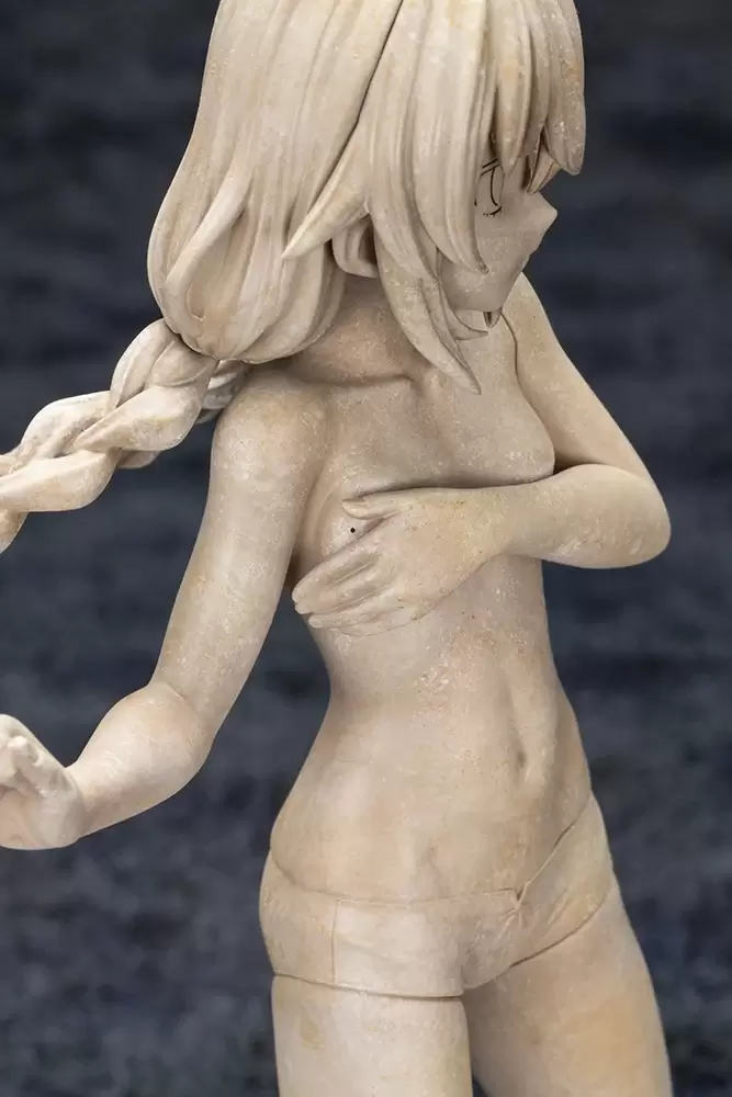 壽屋「洛琪希·米格路迪亞 -Original Ver.-」1/8 比例模型,有別於先前販售過的彩色版本,本次採用更貼近劇中神像的白模塗裝,「雖然乍看之下只是拿著魔杖的普通魔術師,但其實充滿了躍動感;單腳向前跨,把魔杖往前伸出,完全能體會這個瞬間動作!只有露出些許的肌膚,卻能從這個瘦小而絕不算豐滿的身體感受到性感。」,整體施以仿舊的塗裝,讓人感受到這尊神像是如何被膜拜。