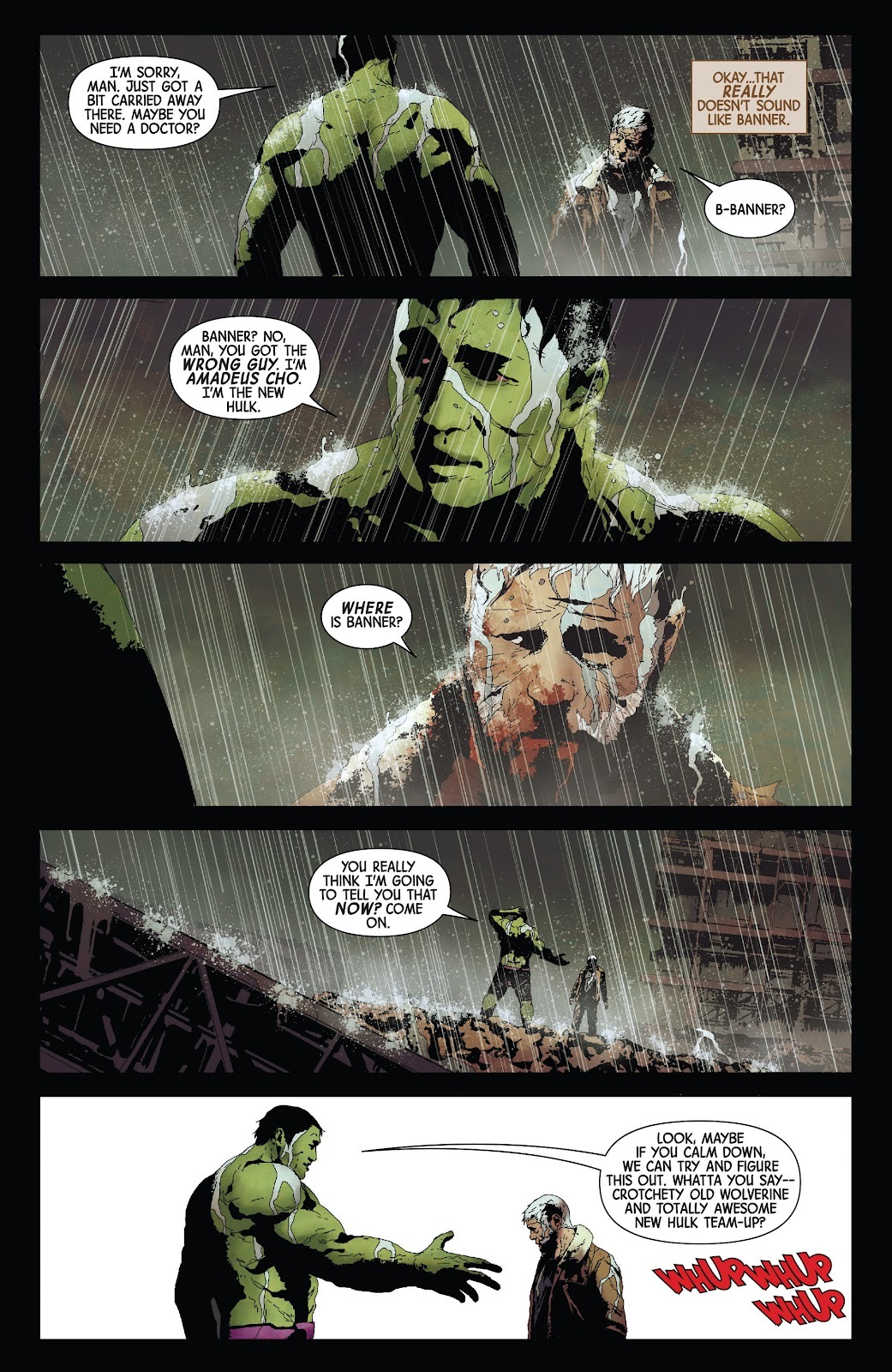 結果未料,老羅根找上的人,其實並不是他所熟知的那個浩克「布魯斯·班納」,而是另一位新任浩克「阿瑪迪斯·趙(Amadeus Cho)」。也因為發現老羅根找錯人打架,最後這場對決也就此停手。