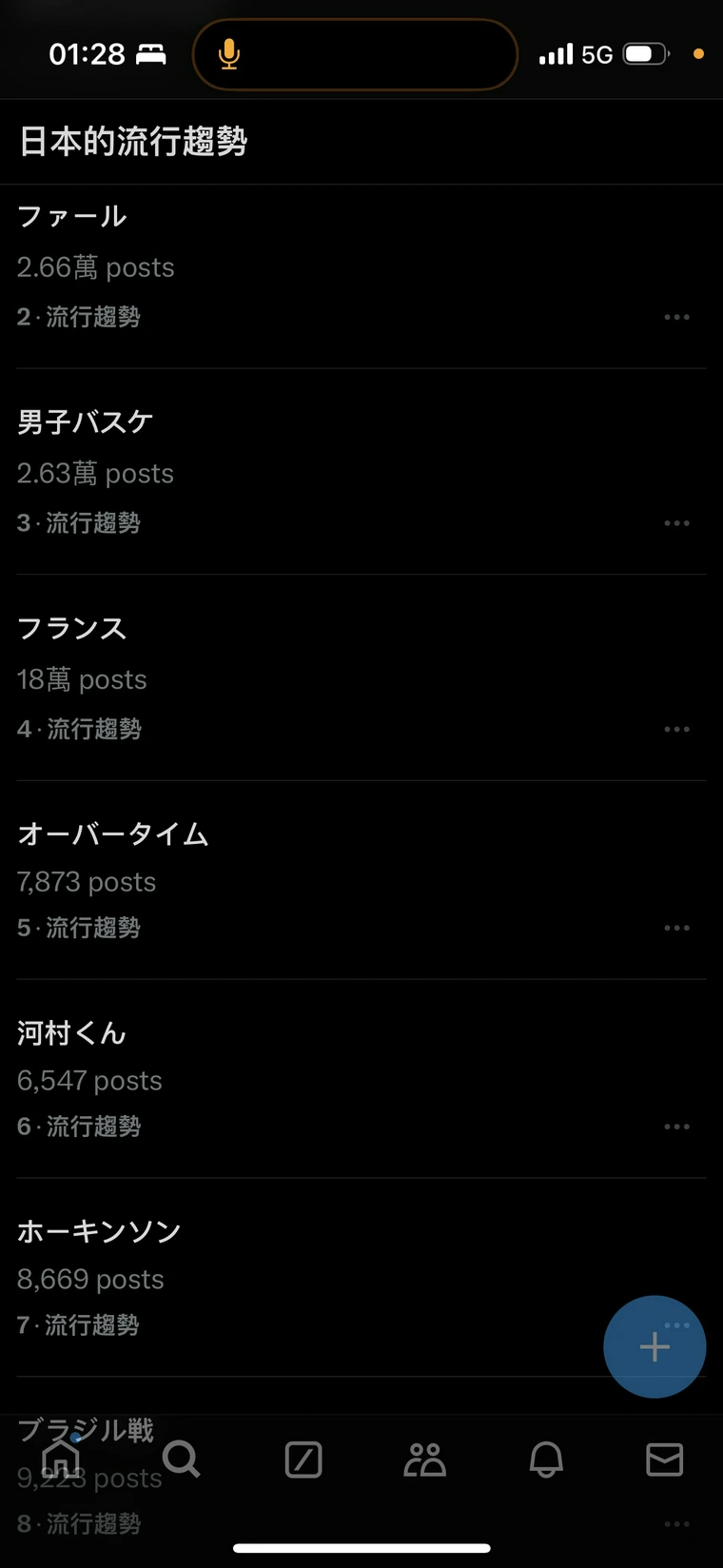 ▼ 整個晚上日本 X 趨勢都是男籃相關的關鍵字。