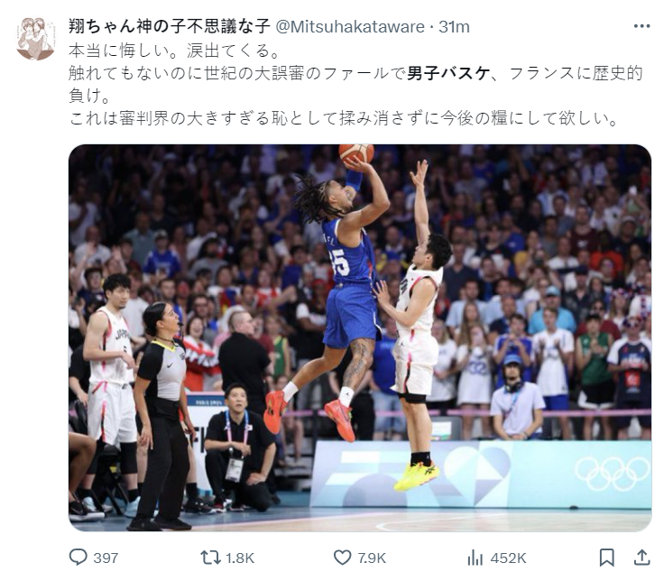 ▼ 許多網友雖說對正規賽的判決頗有意見,但還是感謝日本男籃代表隊的付出與努力,讓世界看到日本男籃的實力。
