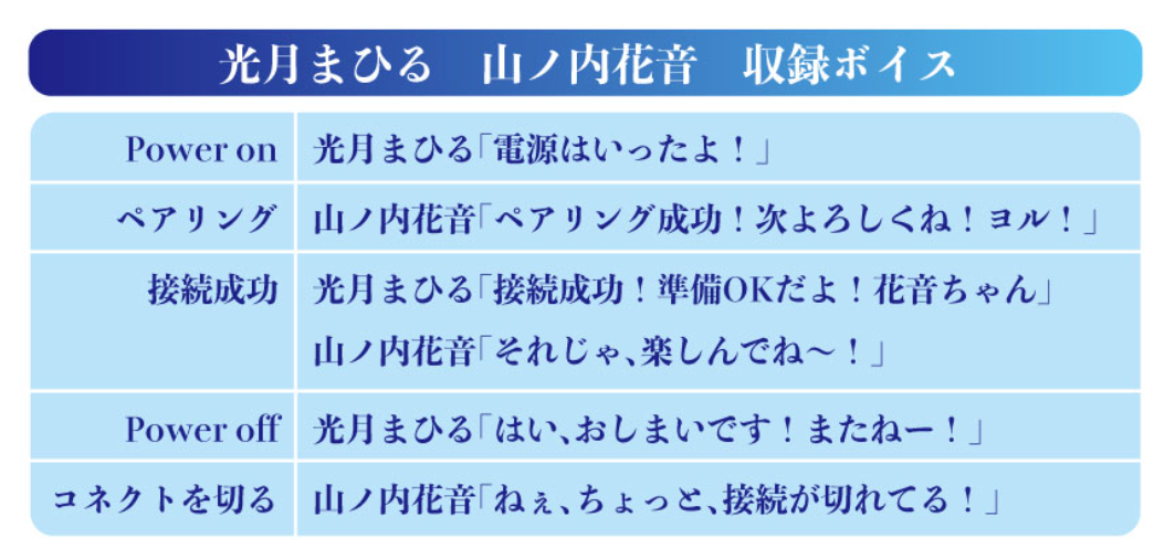 少不了的就是最大賣點提示語音囉 ! 收錄了真晝 & 花音在動畫配音的聲優 ( 伊藤美來 & 高橋李依 ) 所錄製的專屬語音,不論開啟電源、啟動連結都有角色語音在你耳裡,讓你能有角色陪伴在你身邊享受音樂。