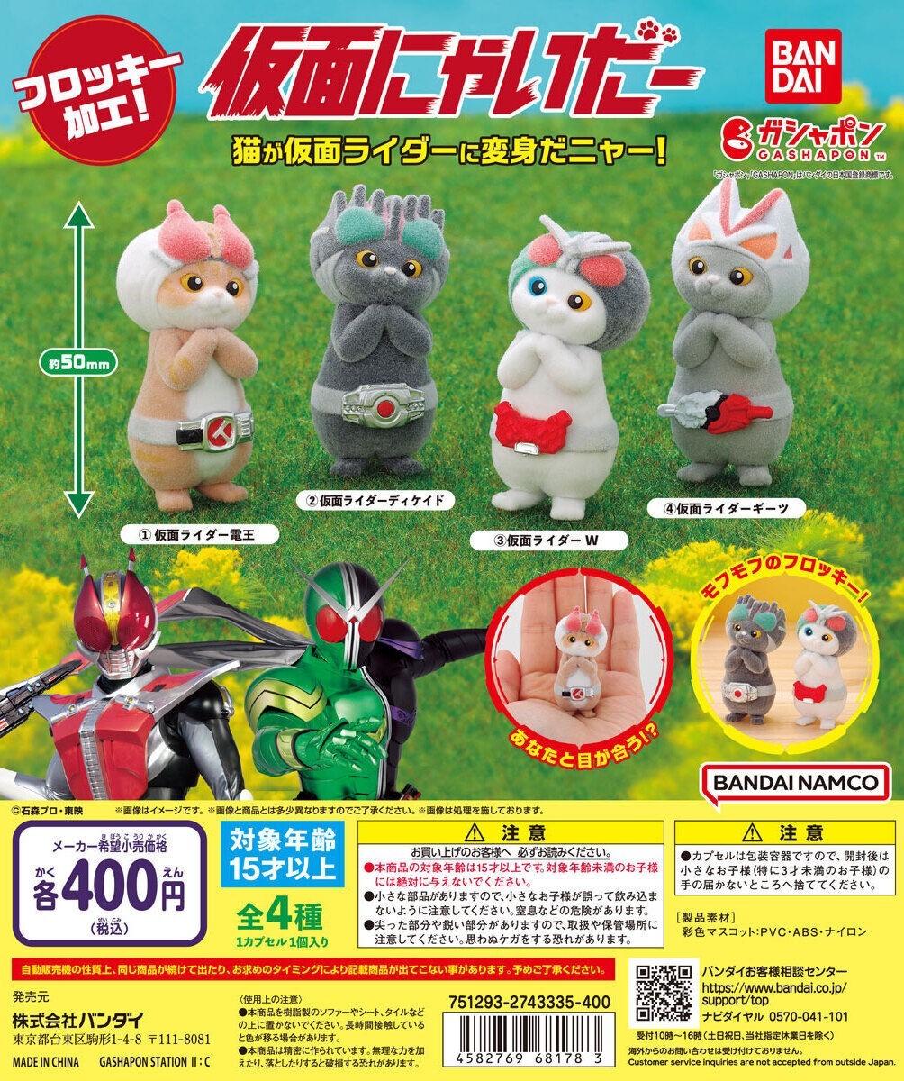 日本萬代公司轉蛋玩具品牌 GASHAPON 將推出《假面騎士》主題的爆萌新品:『假喵騎士(暫譯)』轉蛋!參考售價為一轉 400 日圓,共有 4 種款式,預計於 2024 年 08 月開轉~