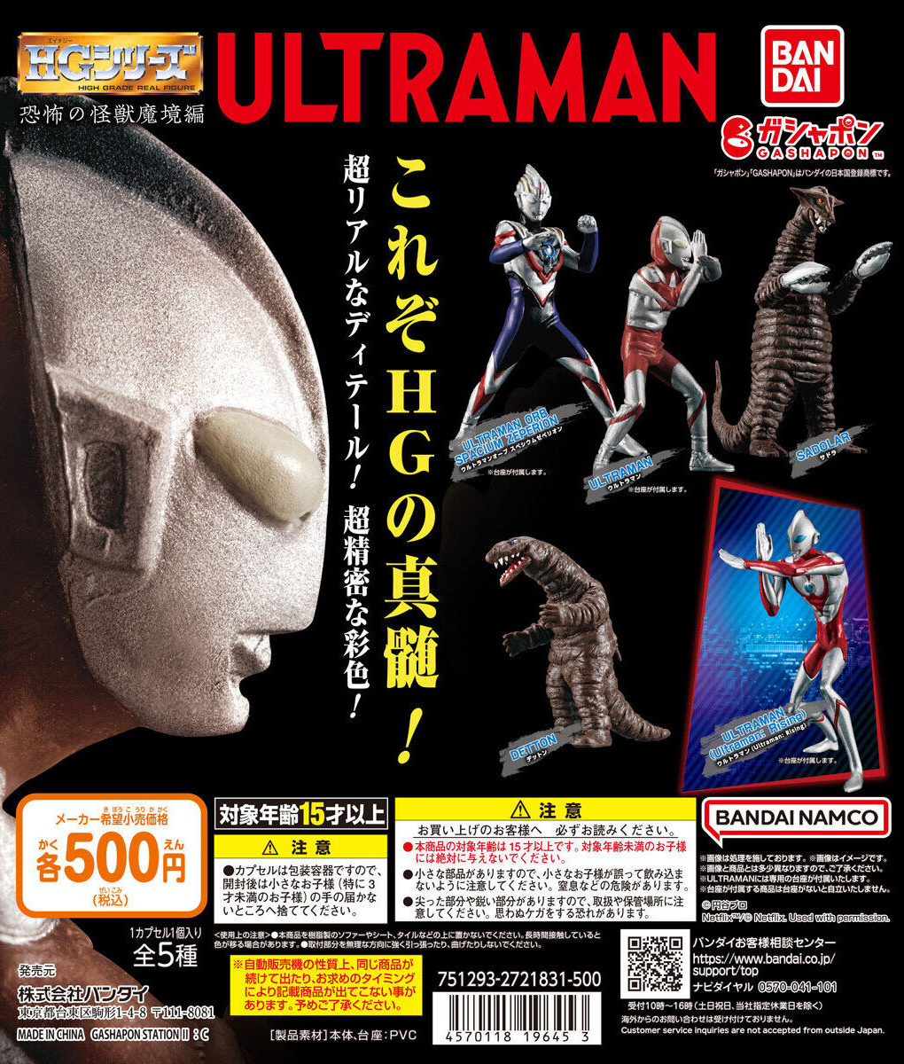由日本萬代玩具公司轉蛋事業部 GASHAPON 發行、將細膩造型刻畫與色彩注入袖珍尺寸的「HG」收藏系列將在 2024 年 8 月第 2 週發售最新商品「HG 超人力霸王 恐怖的怪獸境地篇」!建議售價為每轉 500 日幣,一共有 5 種款式可以收集。
