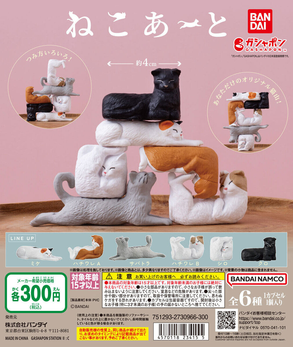 日本萬代玩具公司轉蛋事業部 GASHAPON 將在 2024 年 8 月第 1 週發售可愛的貓咪主題轉蛋「貓之藝術」(暫譯,ねこあーと)!建議售價每轉 300 日幣,一共有 6 種款式可以收集。