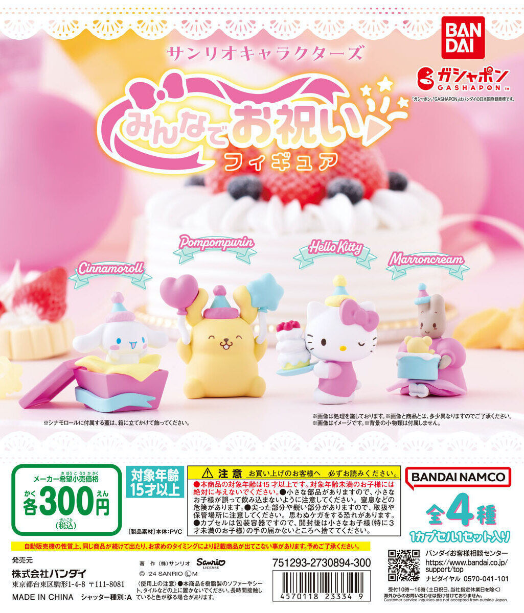 萬代公司轉蛋事業部 GASHAPON 推出超人氣三麗鷗明星主題的新商品——「三麗鷗明星 大家一起慶祝」(暫譯)轉蛋,參考售價為每轉 300 日圓,預計於 2024 年 08 月第二週開轉!