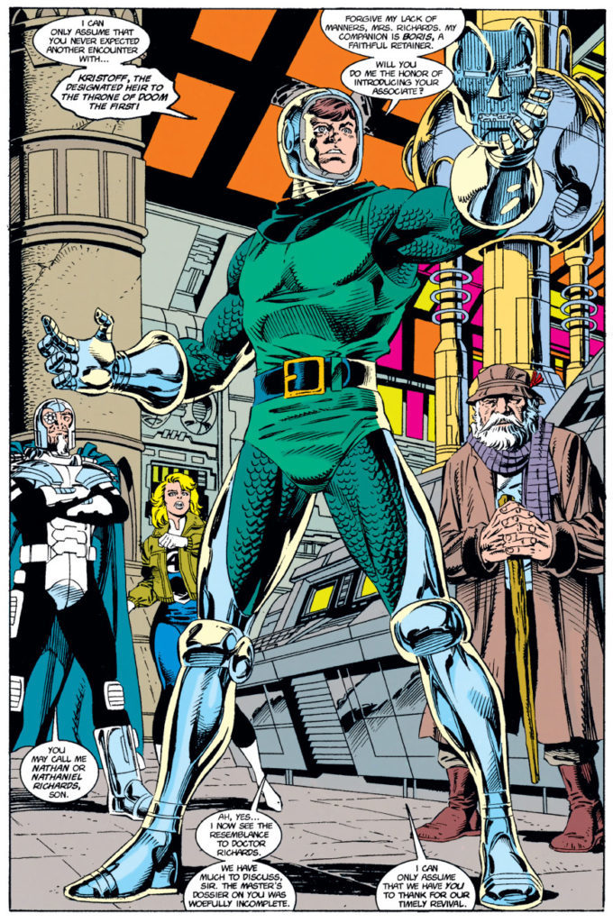 一次,末日博士在國內發生政變後遇見了一對仍然忠於他的母子,母親卻不幸被叛軍的機器人殺死。憤怒的他在奪回王座後收養了變成孤兒的Kristoff,並將他立為自己的繼承人。