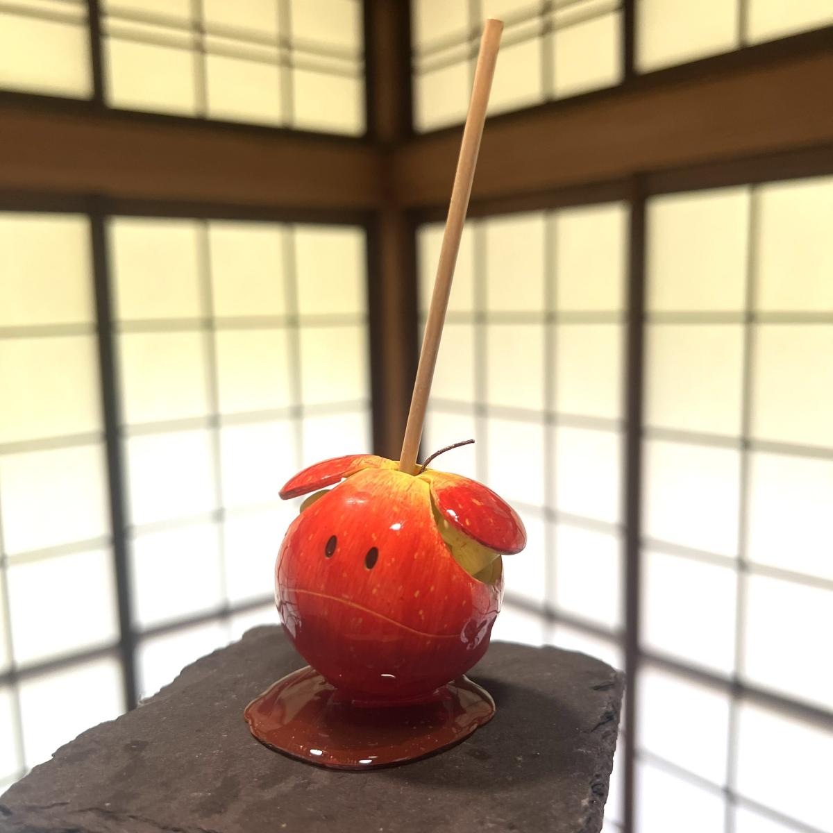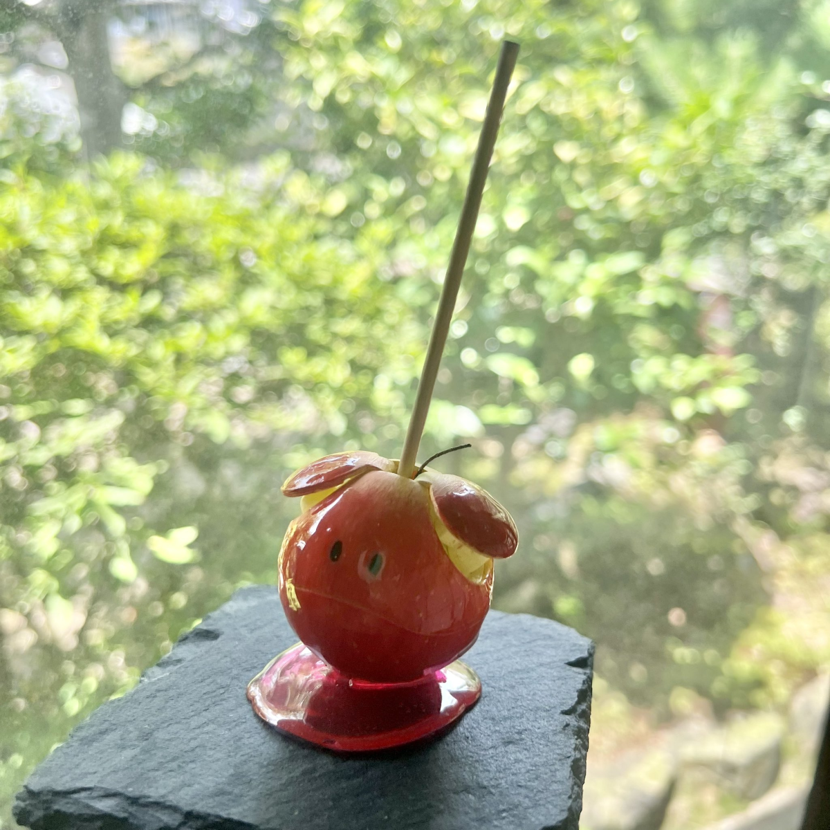 之後,他也真的將蘋果哈囉做成了蘋果糖,類似糖漿凝固的光澤感當然是用UV樹脂做的,而樹脂也剛好能固定住竹籤,這樣看起來就像真的蘋果糖哈囉了。真的不管怎麼看都不像是模型,就連網友們都覺得看起來好好吃、好可愛,可惜它是模型啊~