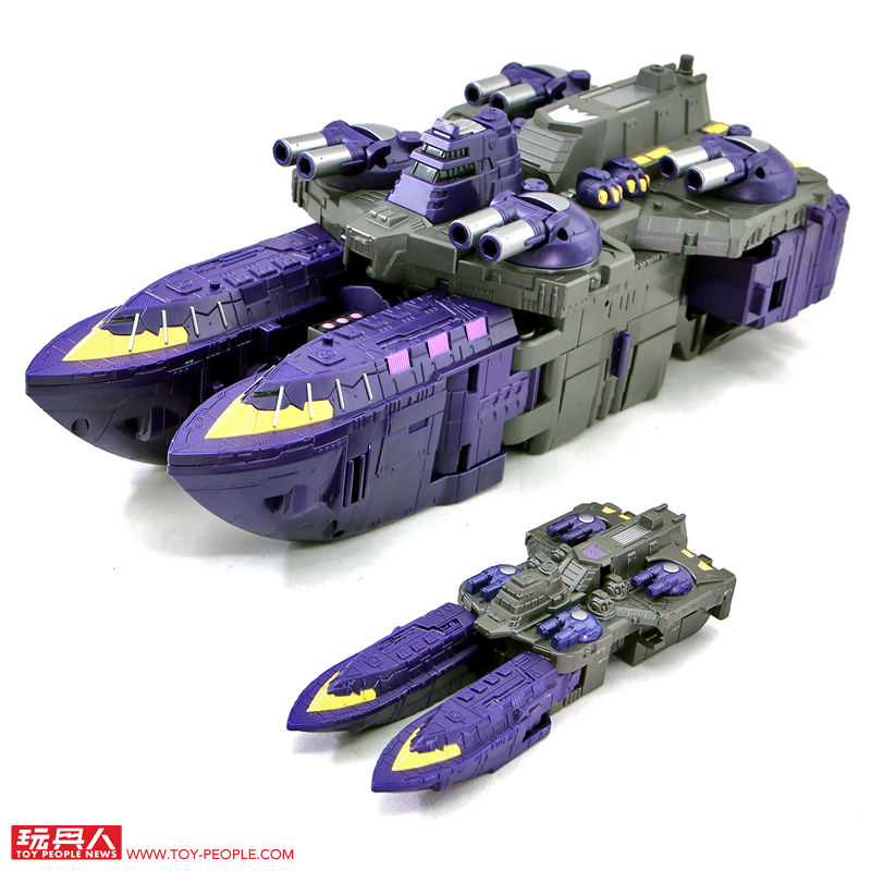 ▼側邊的盒繪也預告了即將推出的艦隊密卡登改色版本,也就是格威隆(Galvatron),或是日版所稱的密卡登超級模式(Megatron Super Mode/メガトロンS)。