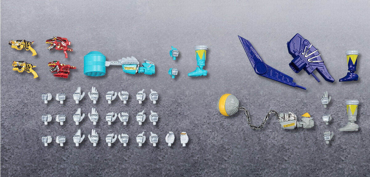 配件除了三人的多種替換造型手掌外,強龍紅的變身槍外,也包含飛棘龍、甲鎚龍、錘頭龍等三種獸電龍武裝,能夠讓「強龍紅・嘉年華模式」替換零件再現功夫嘉年華等多種形態。