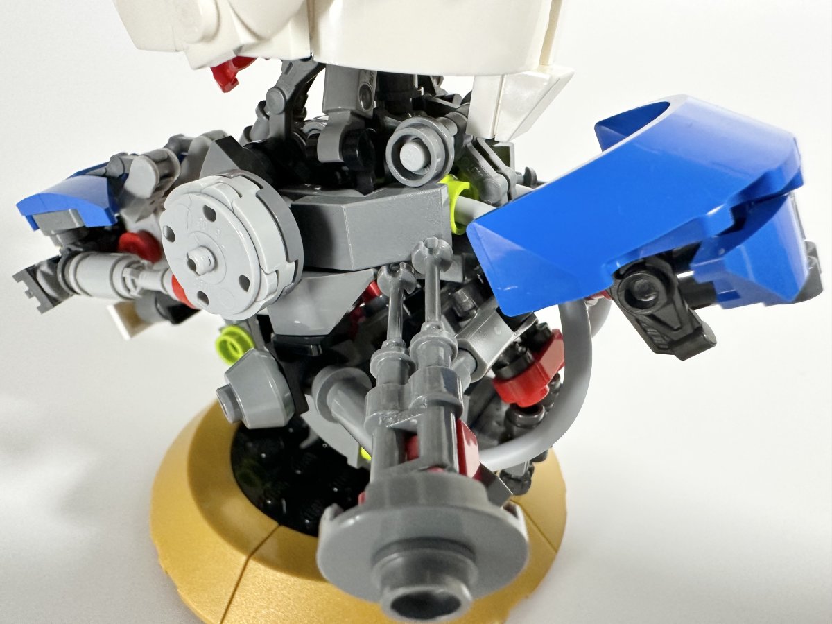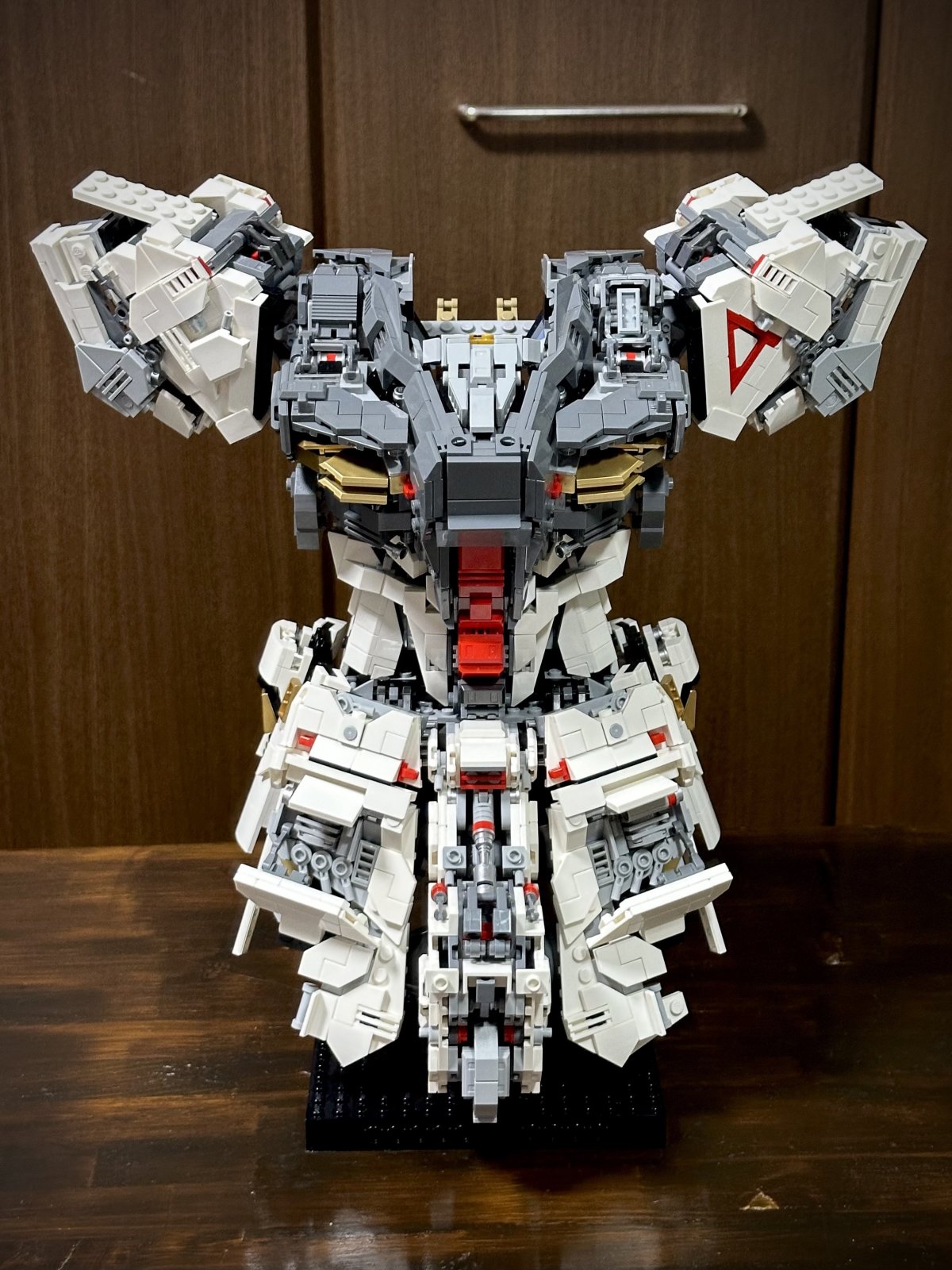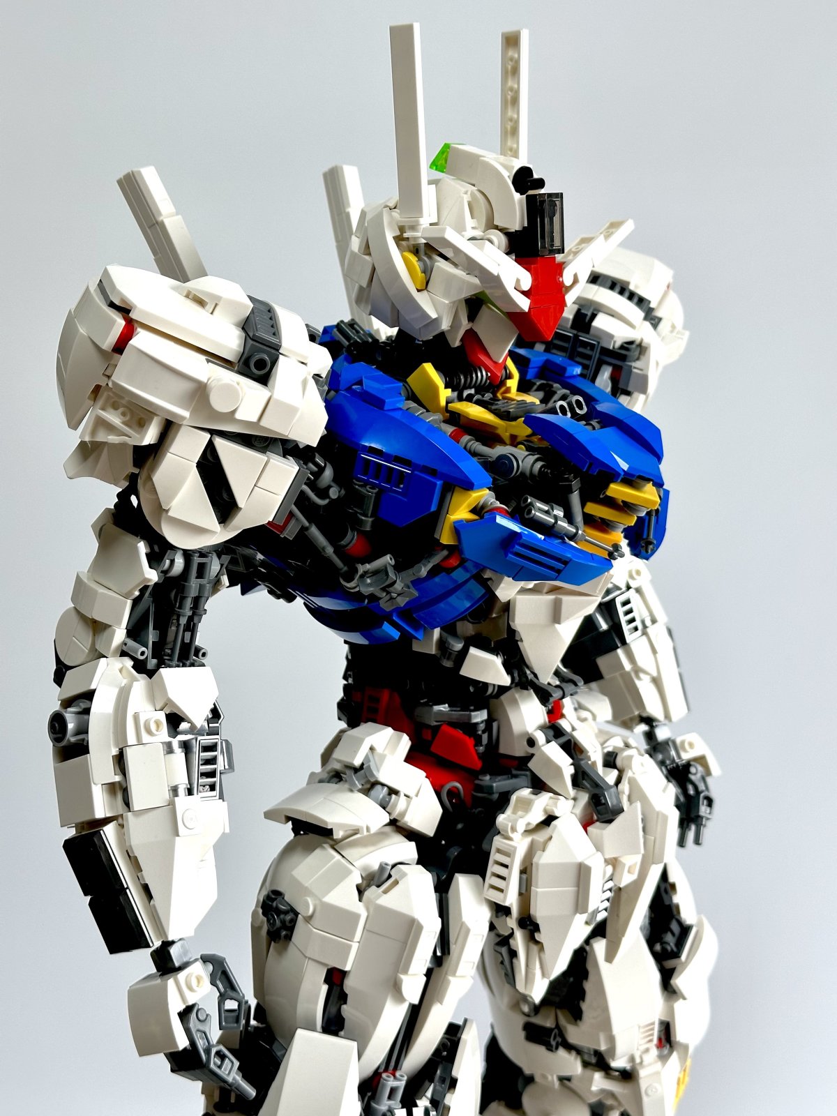 根據セイレイ在 X 上表示,這架樂高振揚自由鋼彈加上底座一共達到 3 公斤重。小編個人認為光是要維持住不讓中心骨架崩解、堆砌出如此躍動感的造型就已經十分困難,還要充分達成機體的輪廓勾勒與細節堆疊,真的超級佩服。