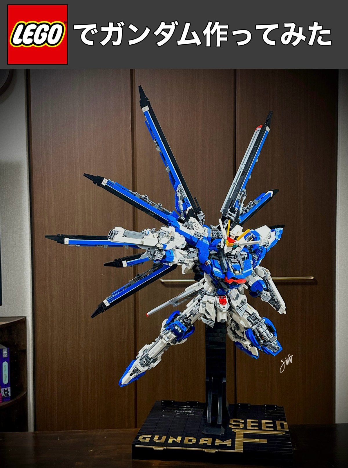 這可能是日本樂高 MOC 大師セイレイ在 X(twitter)上形容自己作品的最經典語句。而他的樂高鋼彈模型更是兼具大型尺寸&壓倒性機構細節的超級傑作,像之前小編介紹過、下圖的風靈鋼彈(右)就有 50 公分高,振揚自由鋼彈(中)含底座則有 77 公分高,相當驚人。