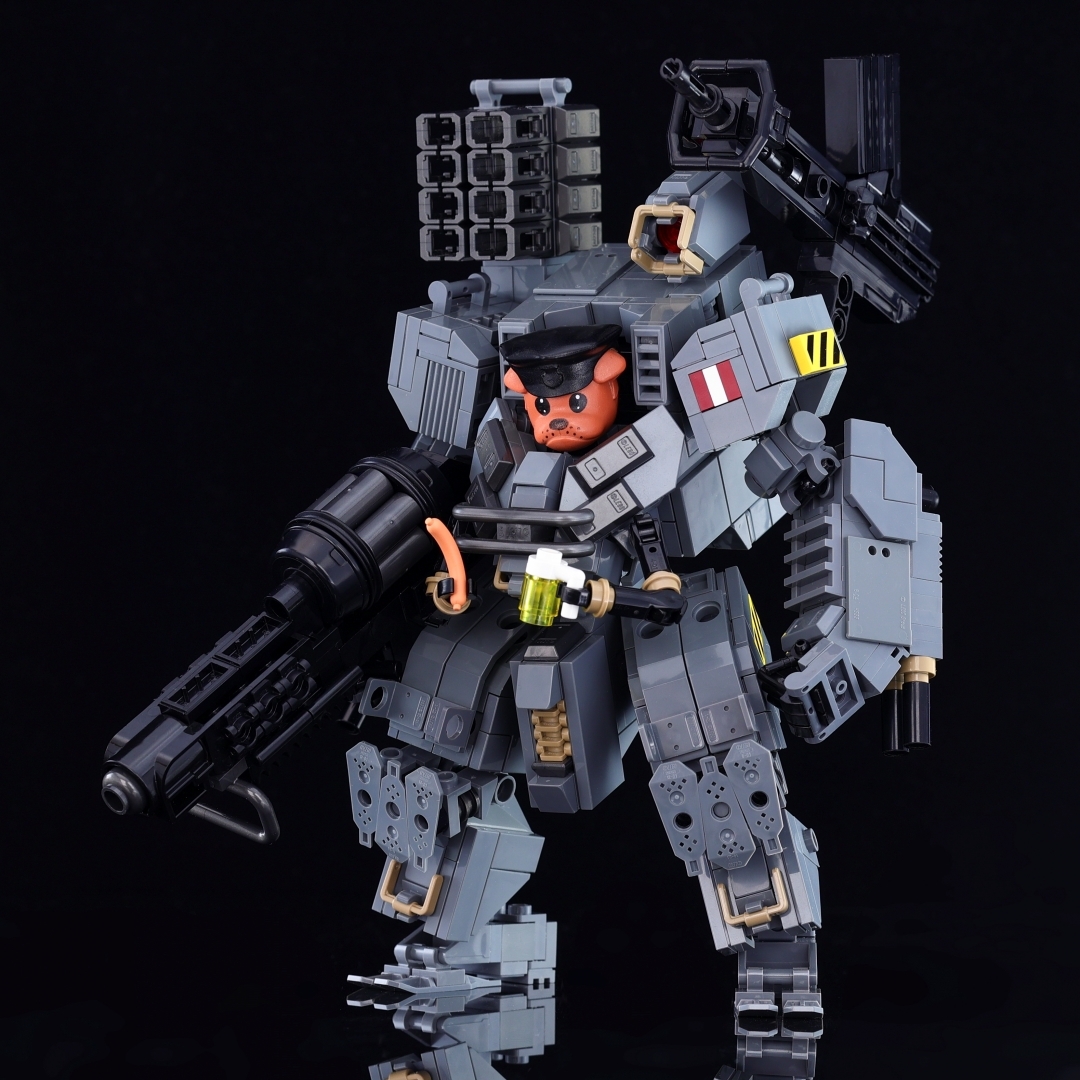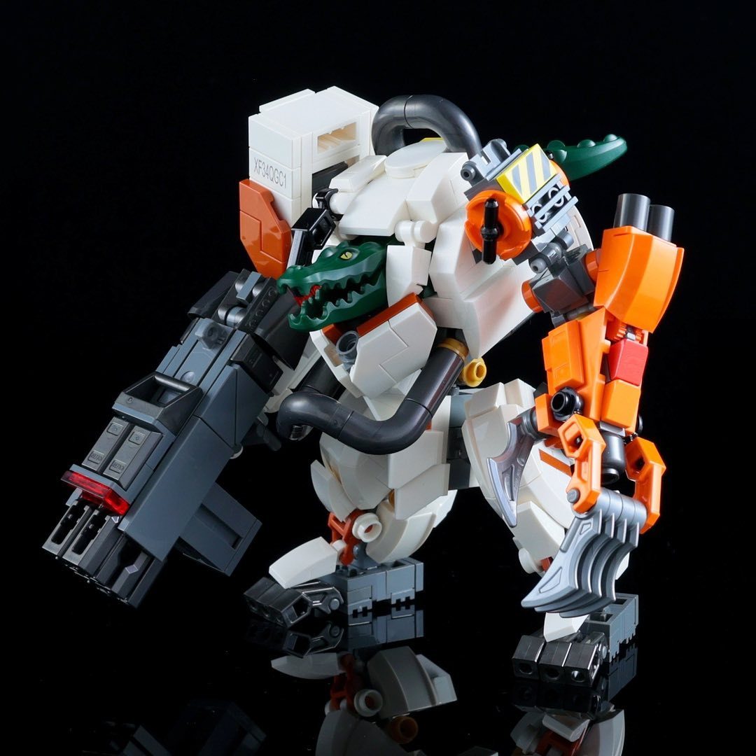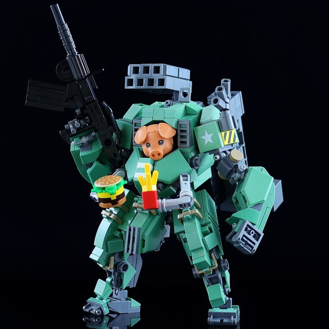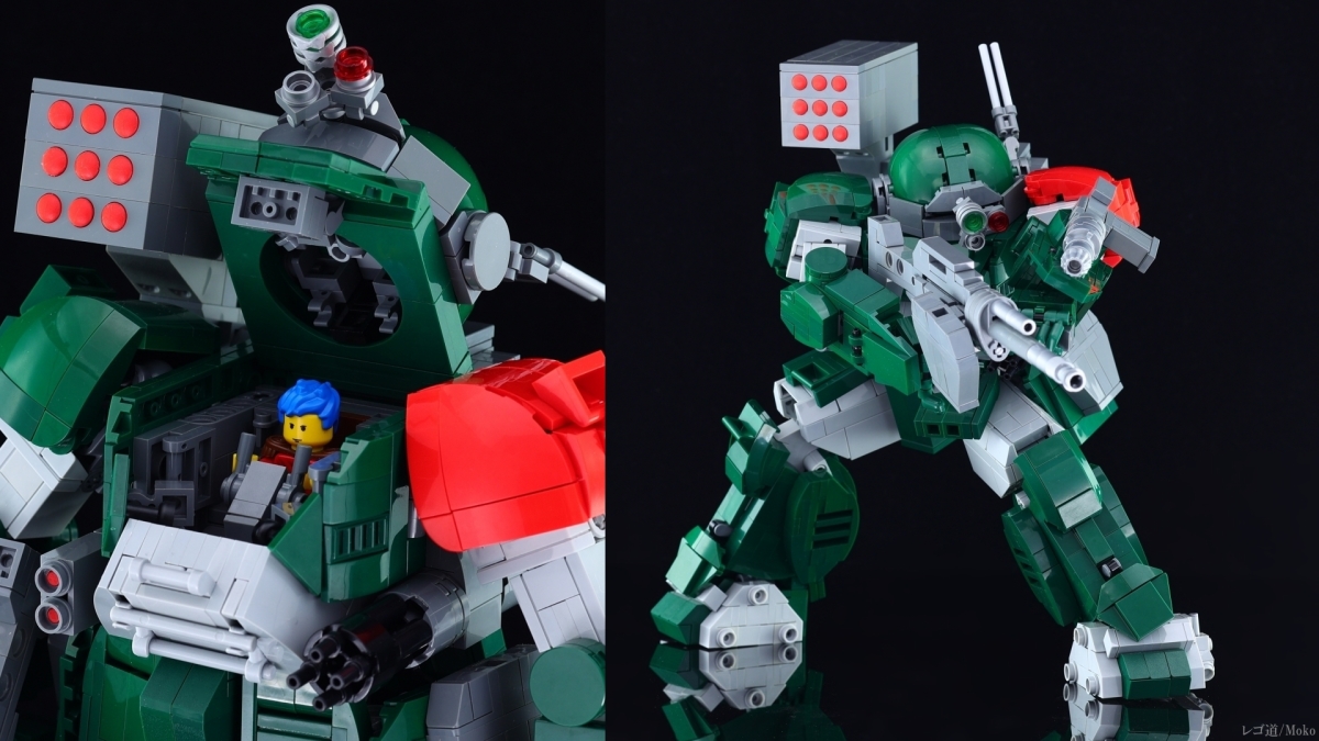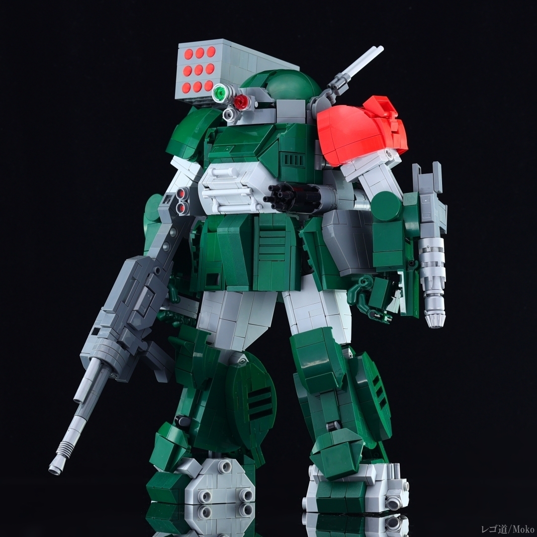出自《裝甲騎兵》、基爾加梅斯軍所開發的正式主力 AT「眼鏡鬥犬」Moko 也利用樂高完美還原,從圓潤的頭部造型、肩甲,經典的三連旋轉鏡頭,到機體的比例、洗練的平滑裝甲都出色地完成。