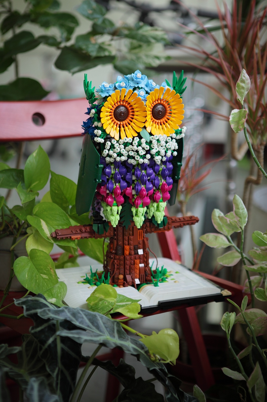 在他的動物樂高創作當中,以插花藝術為靈感、用「10313 野花花束」中各式各樣花朵構成的花卉貓頭鷹肯定是最具代表性且相當獨特的一款創作。