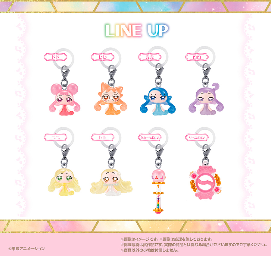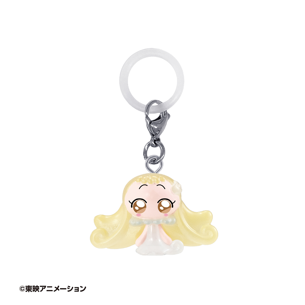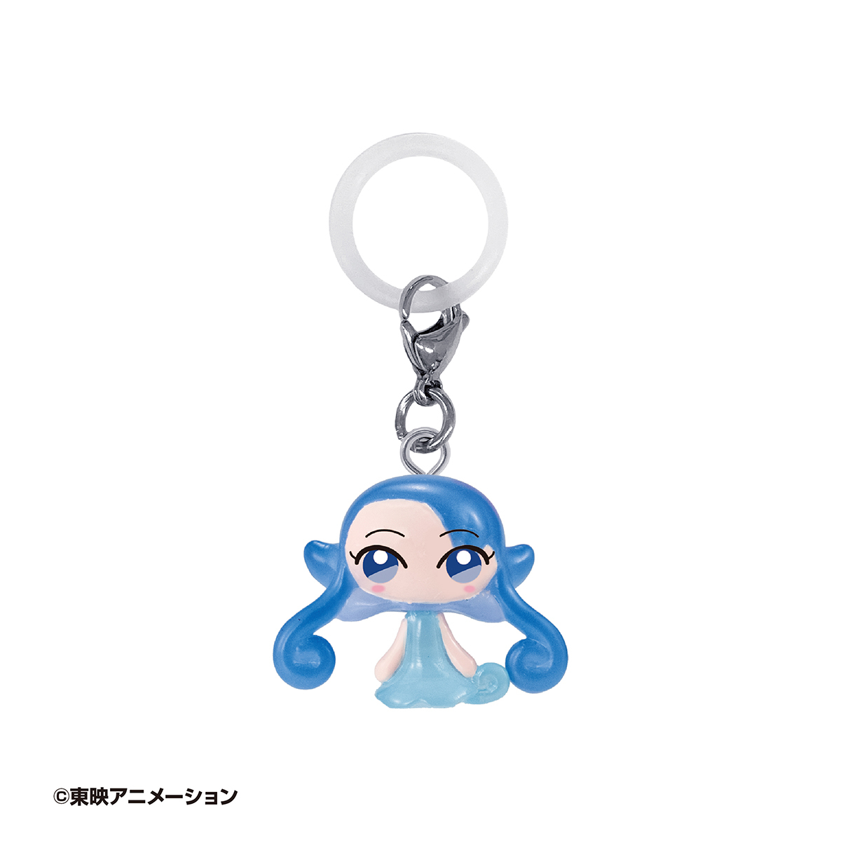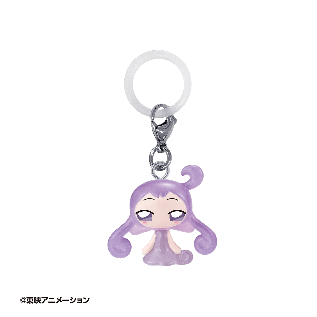 GASHAPON 的標記吊飾系列在吊飾上附有橡皮環,可以將吊飾套在雨傘、水瓶之類的物品上做標記,就不怕拿錯了!在前兩彈推出魔女們的帽子、波龍、魔女莉卡、多款變身轉換器等有趣造型後,本次再度推出《小魔女 DoReMi》主題的標記吊飾,收錄皇家使者專用的「花圈波龍」、通過 6 級魔女試驗後使用的「庫魯魯波龍」以及六位小魔女的精靈夥伴造型,分別是 DoReMi 的精靈「多多」、羽月的精靈「蕾蕾」、小愛的精靈「咪咪」、小音符的精靈「樂樂」、小桃子的精靈「妮妮」以及小花的精靈「豆豆」,一共 8 種款式,吊飾皆以透明 PVC 材質製成再透過上色還原精靈和道具的造型,把精靈們綁在雨傘上感覺就超級可愛!