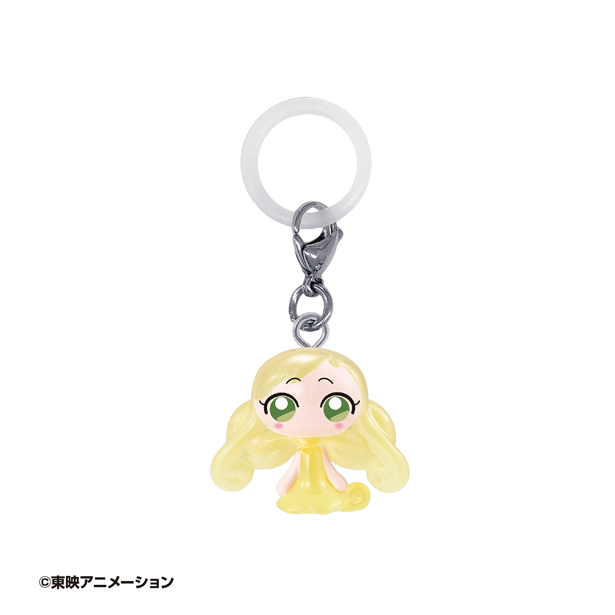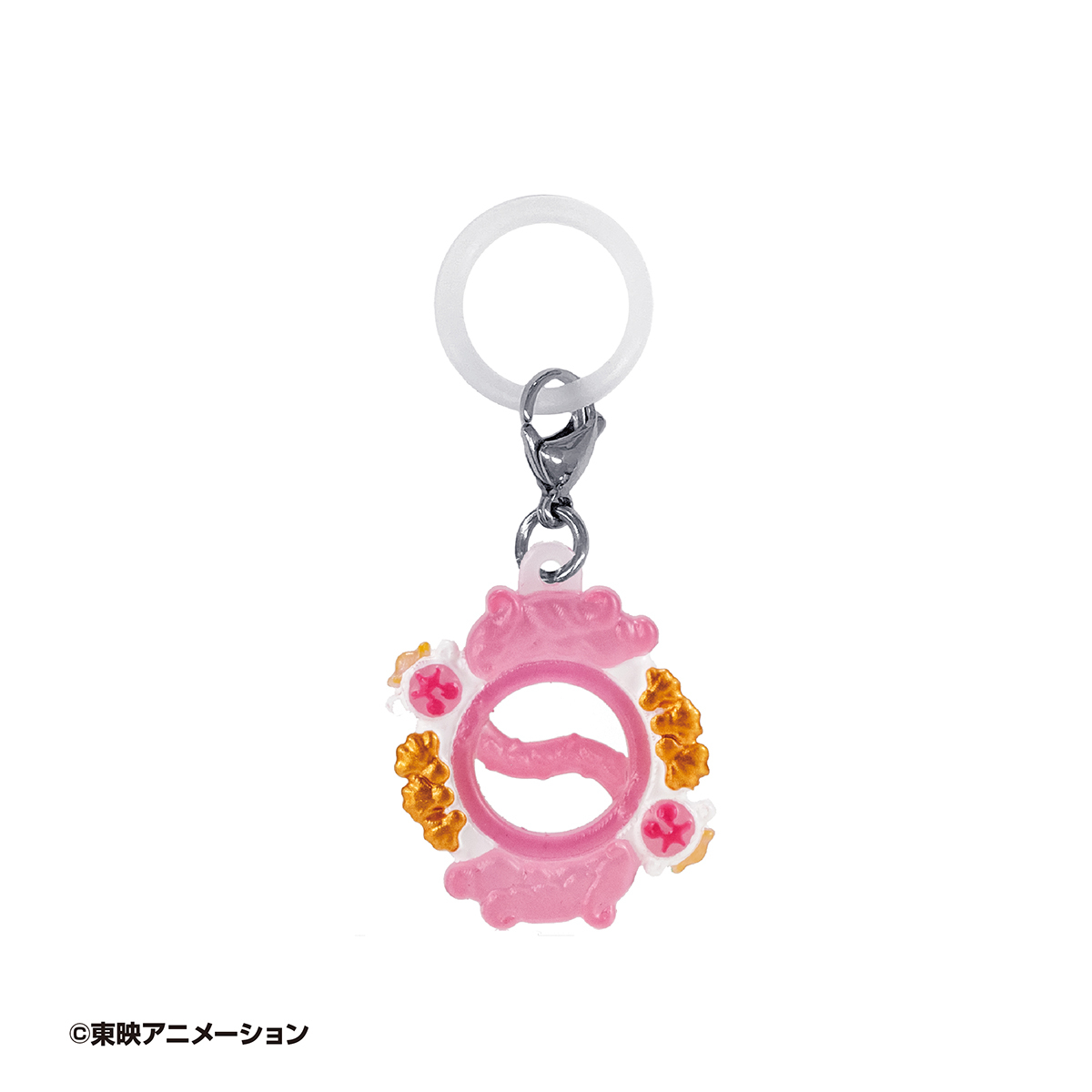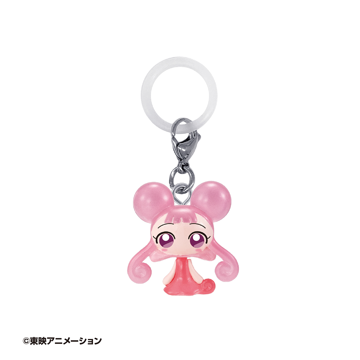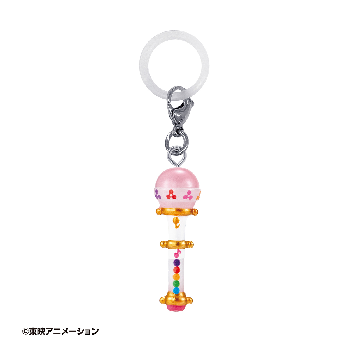 GASHAPON 的標記吊飾系列在吊飾上附有橡皮環,可以將吊飾套在雨傘、水瓶之類的物品上做標記,就不怕拿錯了!在前兩彈推出魔女們的帽子、波龍、魔女莉卡、多款變身轉換器等有趣造型後,本次再度推出《小魔女 DoReMi》主題的標記吊飾,收錄皇家使者專用的「花圈波龍」、通過 6 級魔女試驗後使用的「庫魯魯波龍」以及六位小魔女的精靈夥伴造型,分別是 DoReMi 的精靈「多多」、羽月的精靈「蕾蕾」、小愛的精靈「咪咪」、小音符的精靈「樂樂」、小桃子的精靈「妮妮」以及小花的精靈「豆豆」,一共 8 種款式,吊飾皆以透明 PVC 材質製成再透過上色還原精靈和道具的造型,把精靈們綁在雨傘上感覺就超級可愛!
