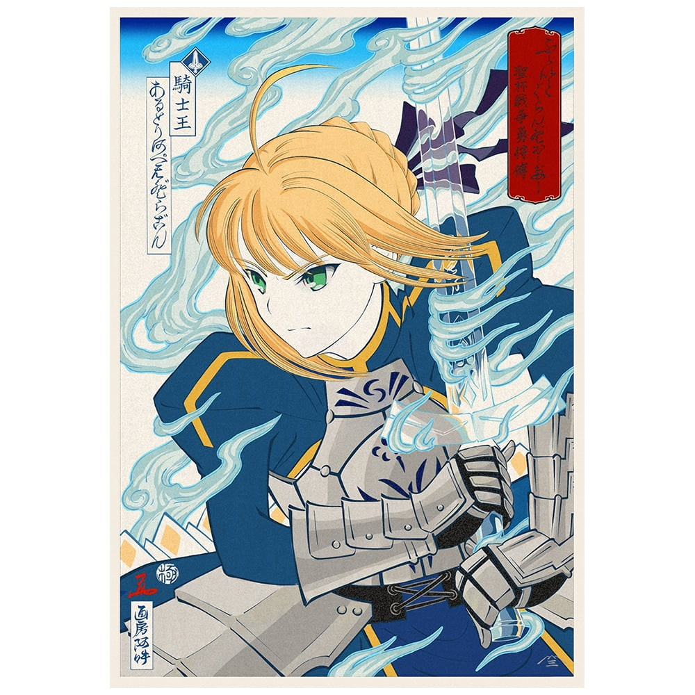 「Fate/Grand Order 浮世繪木版畫」企劃四款作品,阿爾托莉雅·潘德拉貢款為大錦尺寸 ( 不加框長33.5cm × 寬22.9cm ) ,另外三款則為長掛軸版型 ( 不加框長29.7cm × 寬10.5cm ) 。