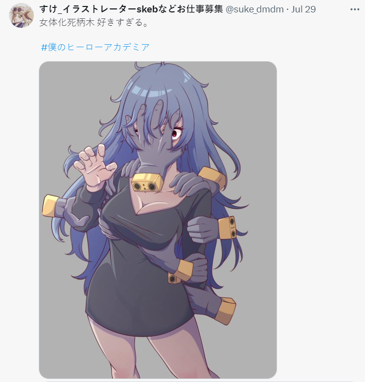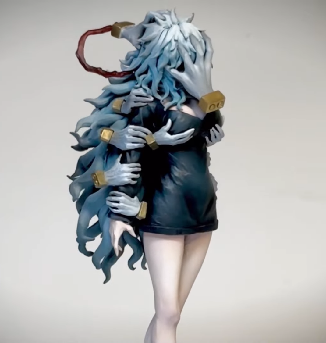 這次他選擇漫畫剛完結的《我的英雄學院》中敵聯盟的死柄木弔再次挑戰「女體化」創意,讓這位身體上佈滿了斷手讓人感到詭異的角色,變幻成長腿又有豐滿上圍的女性,精細的手藝與造型的成果讓網友大為讚嘆。