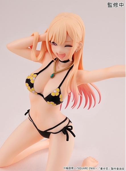 Melty Princess 掌中的喜多川海夢高約 11 公分,為海夢打造了雙腿成跪姿、單手向上延伸比耶的動態,細緻雕刻出海夢從指尖延伸到腰部優美的身體曲線,泳裝的造型更顯現出她的好身材,右手撥弄頭髮的動態也精緻呈現,並塗裝出粉金色漸層的長髮,搭配那個迷人的天真笑容展現出海夢的迷人魅力!