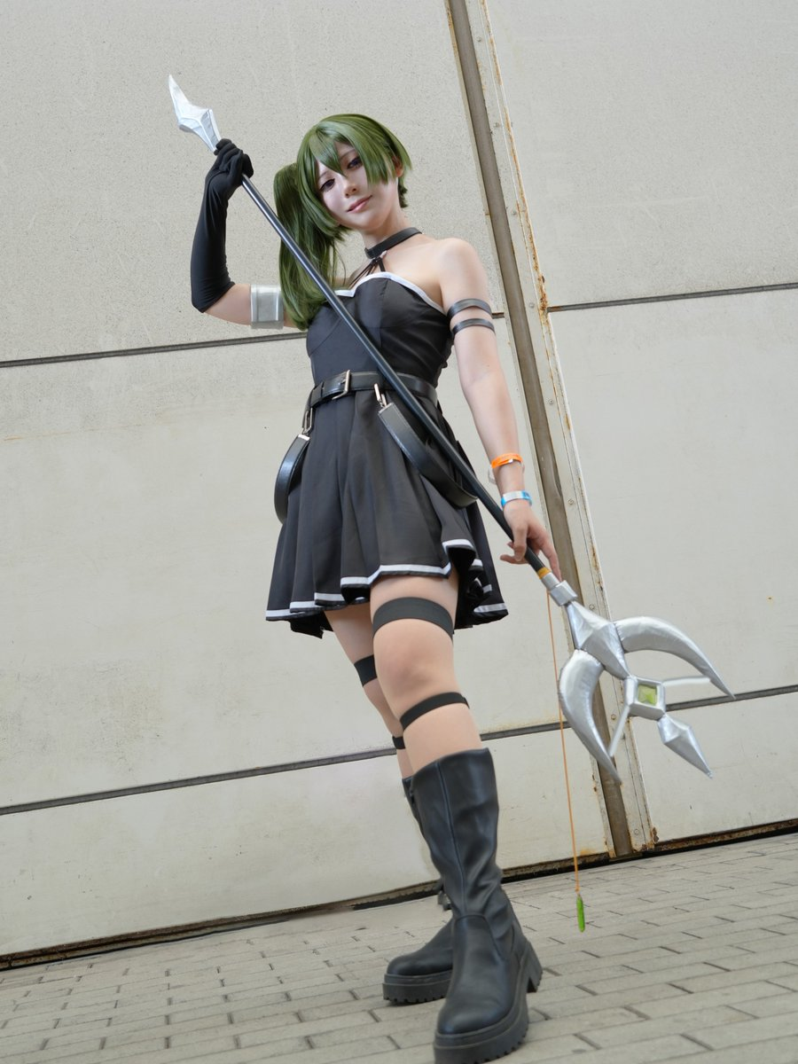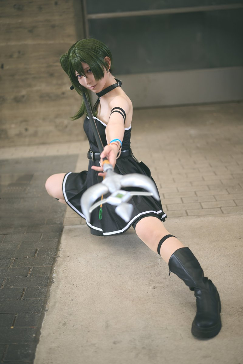 Coser 中野べこ非常擅長製作 Cosplay 道具與服裝,幾乎每次出角都是自行製作上場。這次尤蓓爾雖說服裝是以現成的來出角,不過妝髮仍是出自己之手,尤其是手持的武器更是花費不少苦心製作。