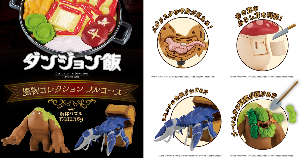 在日本 MEGAHOUSE(メガハウス)玩具公司人氣立體拼圖玩具「解體拼圖 (解体パズル) 中主打幻想生物的 FANTASY 支線,以《迷宮飯》為題的最新商品「魔物收藏 FULL COURSE」(魔物コレクション フルコース)近日公開了更多關於本作的資訊,我們終於可以更加了解這些魔物啦!