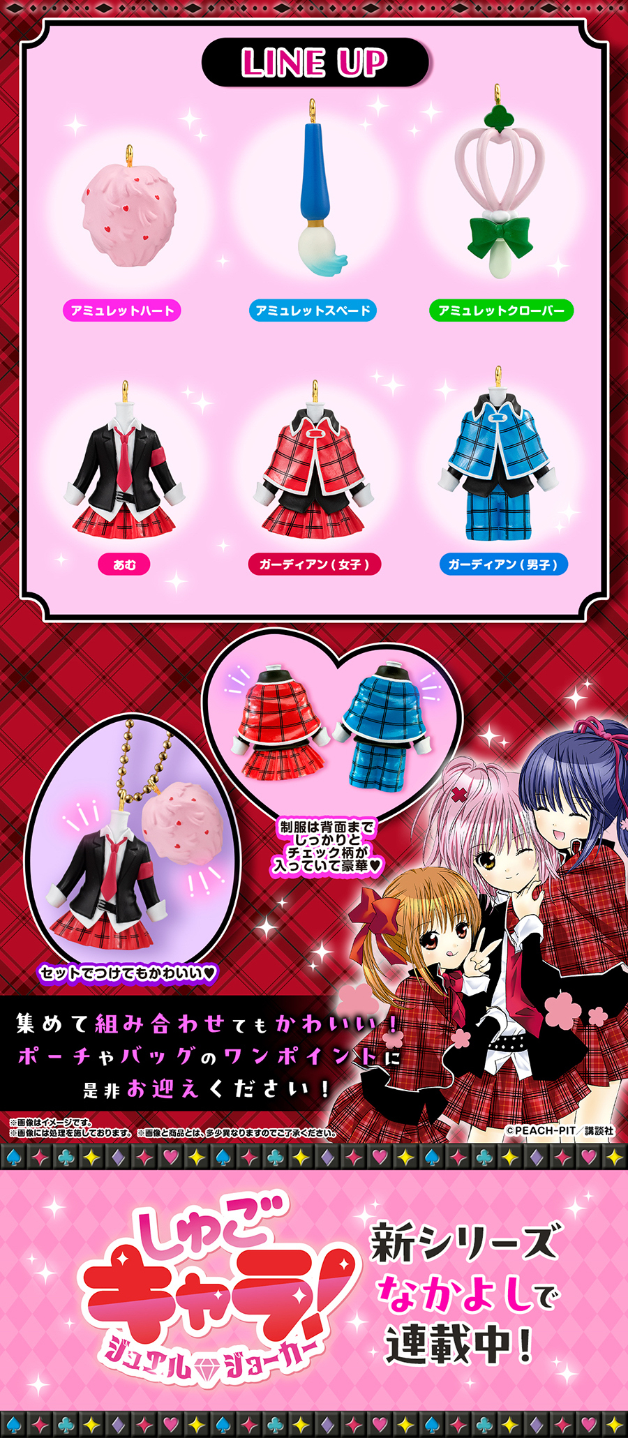 《守護甜心!》是由漫畫家拍檔 PEACH-PIT 執筆的少女漫畫作品,2007 年由 SATELIGHT 改編製作為電視動畫,故事講述主角亞夢與聖夜學園裡由擁有「守護甜心」的學生組成、名為「守護之星」的組織一同尋找能實現任何夢想及願望的魔法蛋「守護胚」,並同時解決同樣在尋找守護胚的邪惡集團「EASTER」派出來腐化人心的「惡蛋」所造成的種種事件。系列的新作《守護甜心!Jewel Joker》(暫譯:しゅごキャラ! ジュエルジョーカー)也在本月的 02 號發售的《Nakayoshi》展開連載!