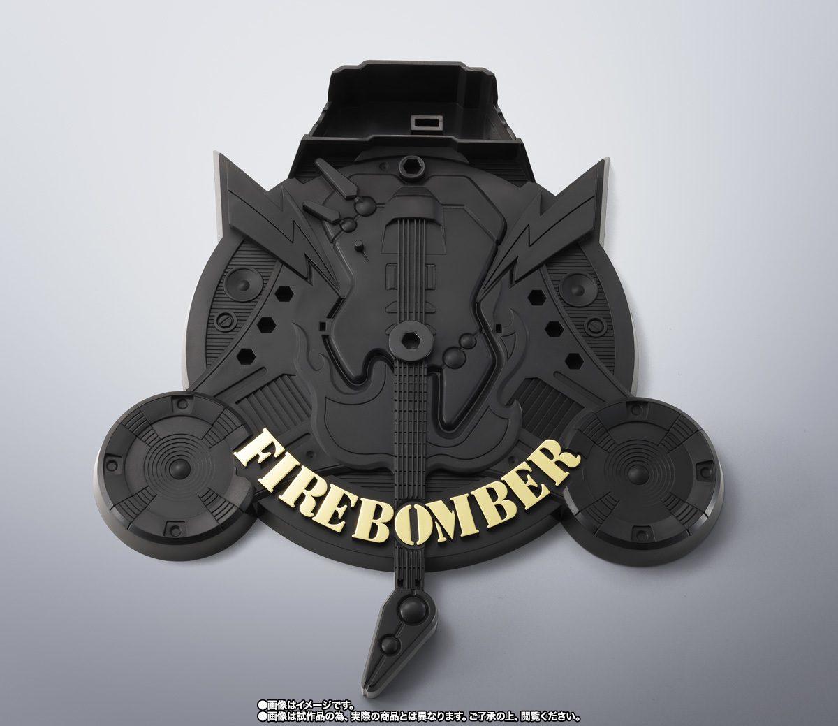此外配件還附上了火焰女武神的專用台座,除了刻有燙金字樣的團名「FIREBOMBER」外,表現更有熱氣巴薩拉使用的「電吉他」等元素浮雕,造型非常帥氣!