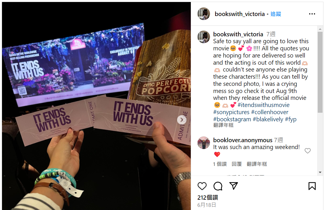 @bookswith_victoria:「可以放心地說,你們都會愛上這部電影!!! 你們期待的所有經典台詞都演繹得非常到位,演技更是驚豔無比。我無法想像有其他人能詮釋這些角色!!!」