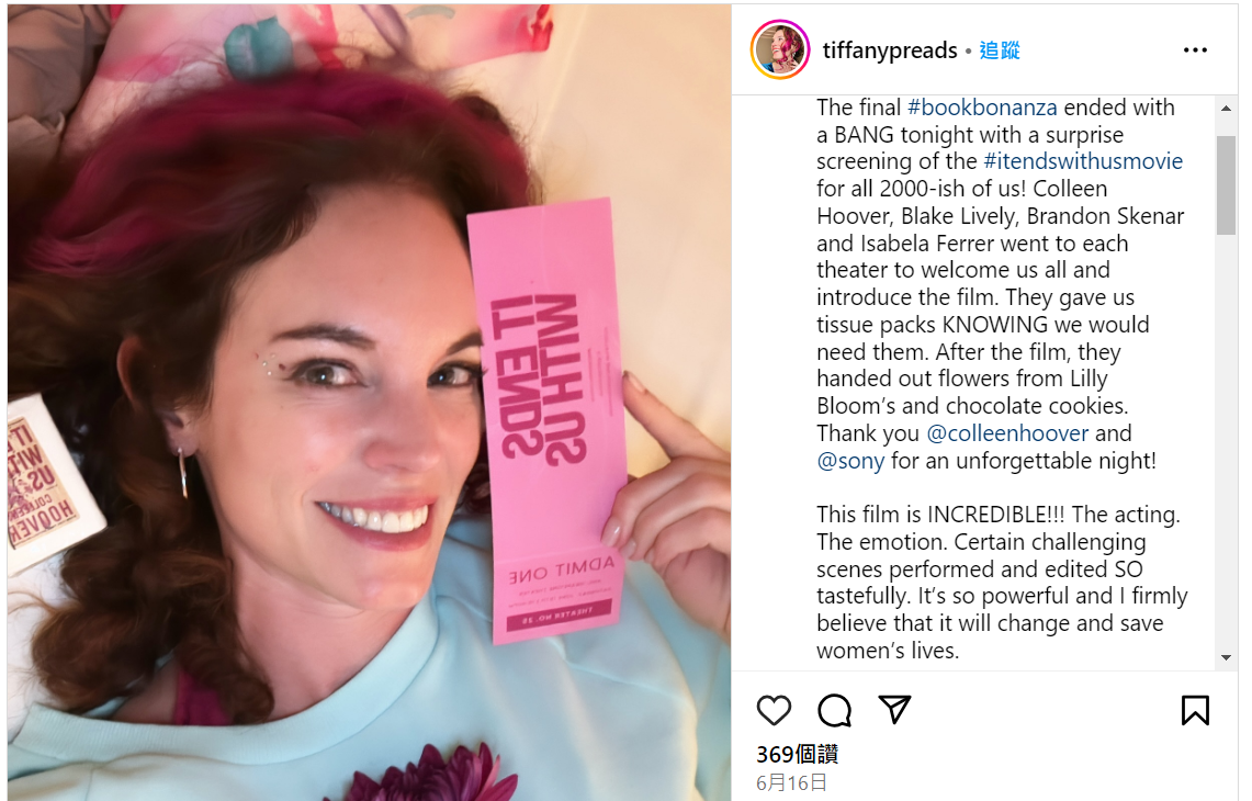 tiffanypreads:「他們進場前發了衛生紙給我們,知道我們一定會用到。這部電影真的太棒了!!!不論是演技或情感層面,還有那些具有挑戰性的場景,都被演繹和剪輯得非常有品味。這部電影非常震撼,我堅信它會改變並拯救許多女性的生命。」