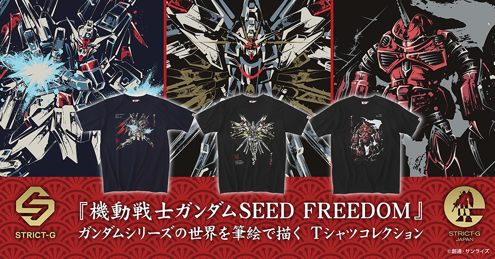 近日宣布將以最新劇場版的《機動戰士鋼彈 SEED FREEDOM》為主題,推出三款全新的和風繪圖短 T ,目前可於日本萬代 PB 網站預購。