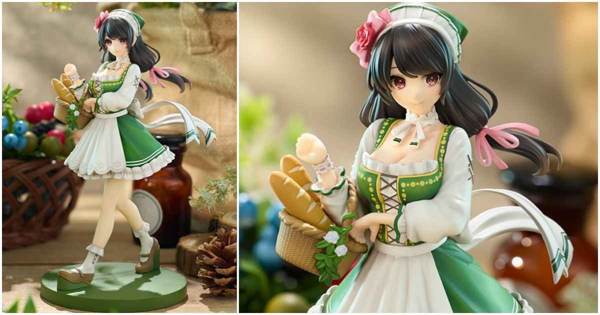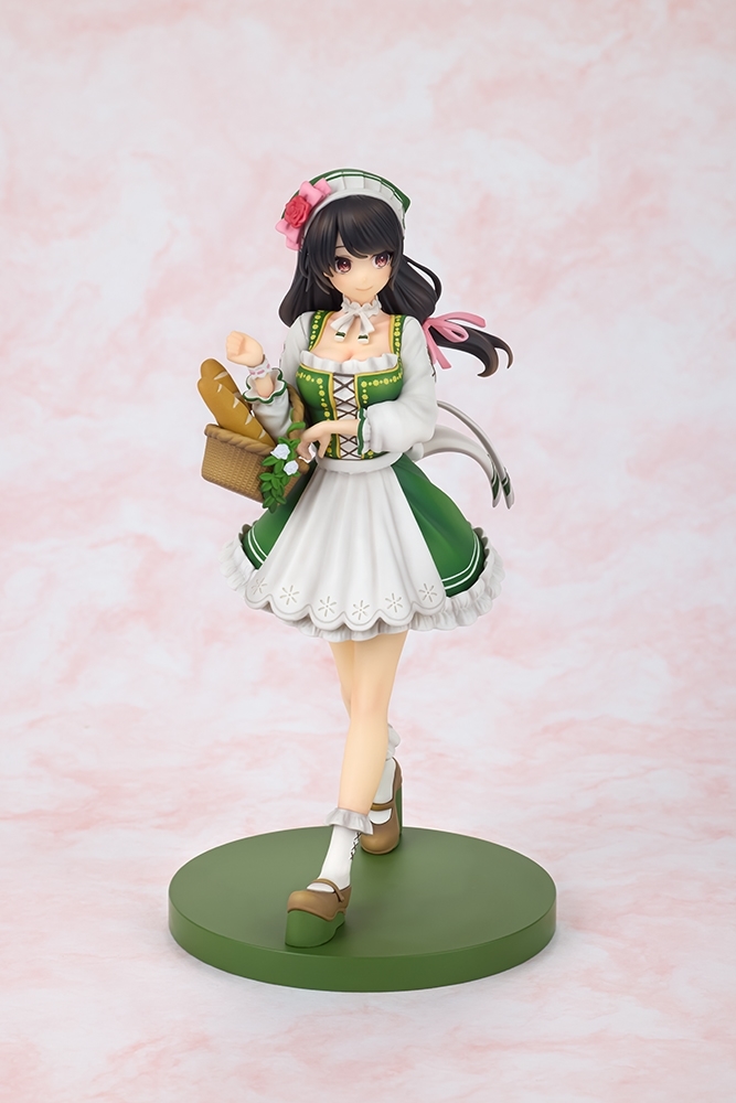 「KDcolle 芸芸 原作版 10週年紀念ver.」1/7比例模型,尺寸約高 17 公分,將繪師三嶋黑音所繪製的紀念插畫立體化!身穿充滿荷葉邊小洋裝,輕新的鮮綠配色營造樸質的氣息~踏著輕盈的腳步、臉上掛著放鬆的笑容,手裡還提著裝滿麵包的籐編籃,搭配花朵髮飾、頸鍊等細節打扮,散發鄉村女孩的氛圍!