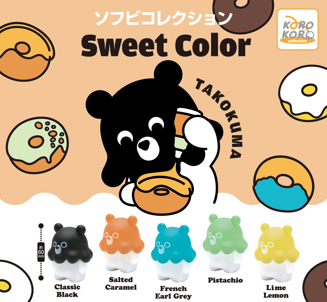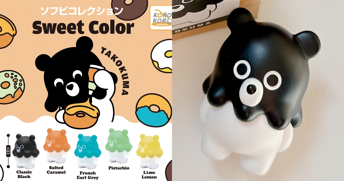 『KOROKORO 章魚熊 Sweet Color 軟膠扭蛋』,為 6 公分的小尺寸,並以各種甜點色彩為發想,除了經典黑之外,還讓可愛的章魚熊換上美味的鹽焦糖、法式伯爵茶、開心果跟檸檬等粉嫩配色,看起來是不是很好吃呀?