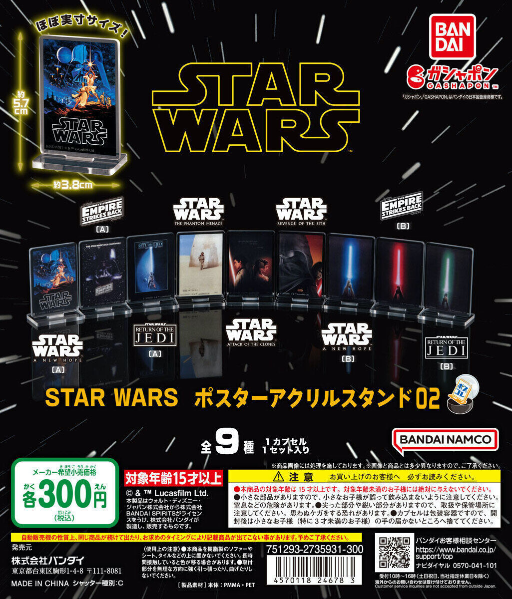 日本萬代公司轉蛋事業部 GASHAPON 將推出《星際大戰》主題的新商品——「《星際大戰》海報壓克力立牌 02」轉蛋,參考售價為每轉 300 日圓,預計於 2024 年 08 月第二週發售!